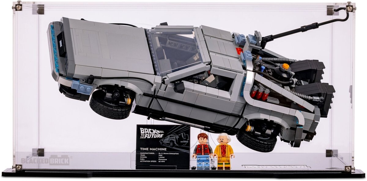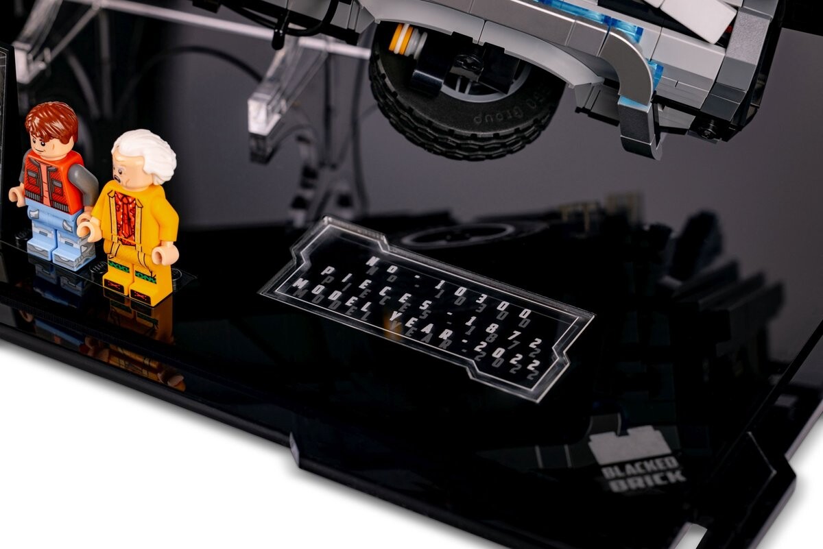 Витрина Blacked Brick обеспечивает исключительную защиту и наглядность вашей модели LEGO Creator Expert — 10300 DeLorean Time Machine.
