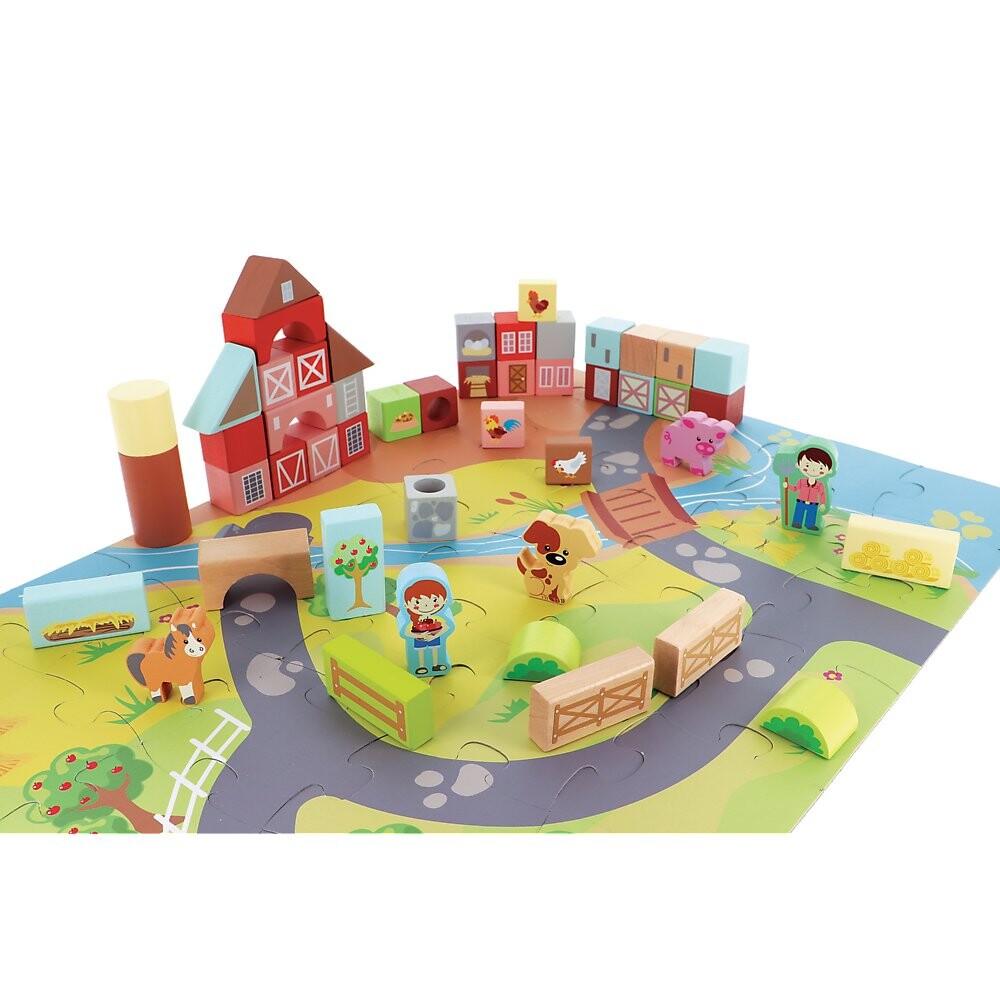 Обучающий набор из 64 красочных тематических кубиков с ковриком-головоломкой, созданный в сотрудничестве с психологом с учетом потребностей самых маленьких. Используйте разноцветные блоки, чтобы построить ферму: дом, курятник, сарай и загон для животных.