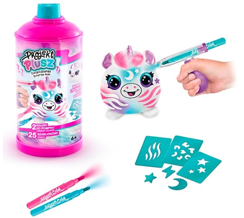 Открыв посылку, вы обнаруживаете случайно отправленную плюшевую игрушку впечатляющего размера - 7,5 см. Это начало вашего творческого приключения, ведь теперь вы сможете придать ему уникальный вид, который будет отражать ваши идеи и фантазии. Собрать: единорог, рыбка. пудель, тюлень, обезьяна и хаски. Разбудите свое воображениеProject Plush предоставляет вам набор инструментов, которые помогут вам создавать свои собственные проекты. Вы получите 2 цветные ручки, 25 шаблонов и ручной аэрограф. Все это позволит вам проявить свои творческие способности и создать неповторимого плюшевого друга.