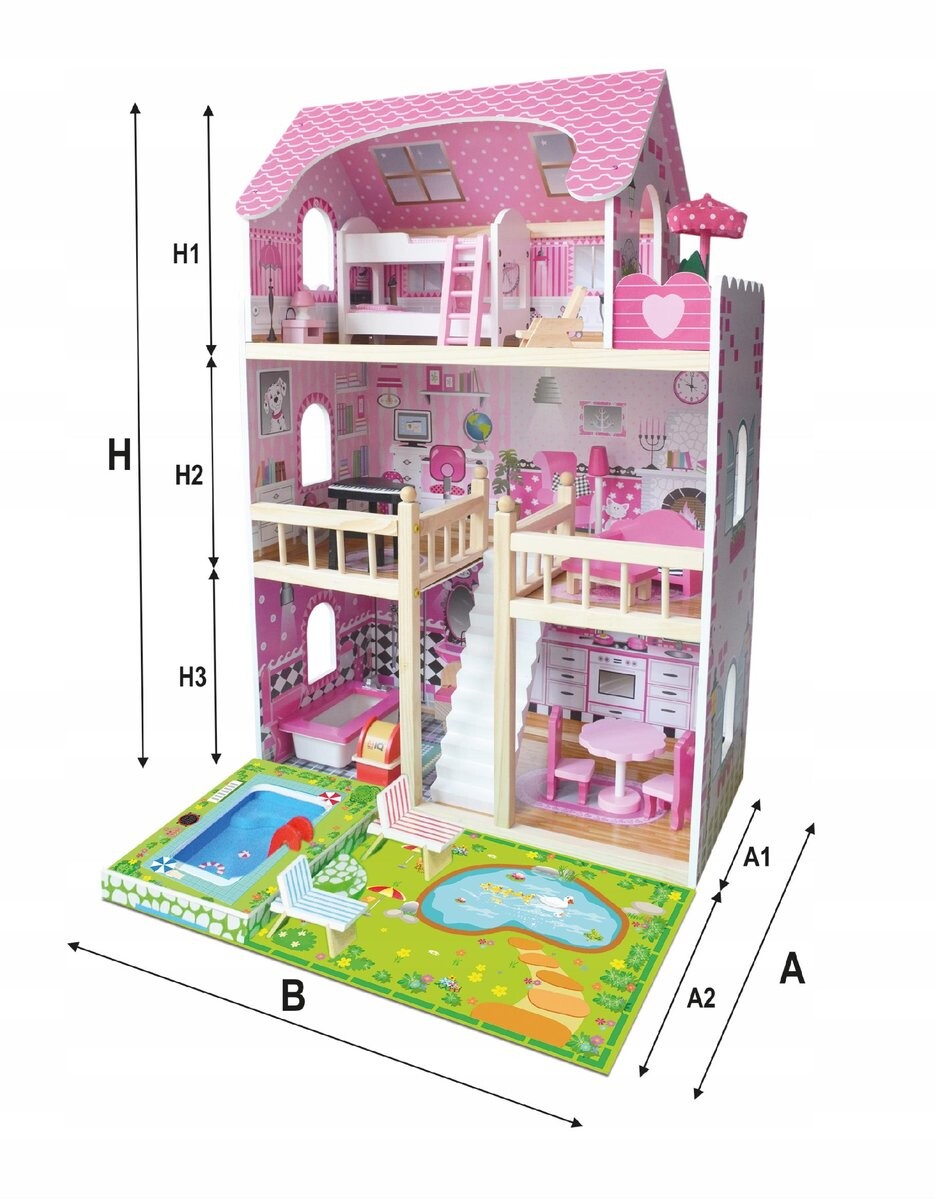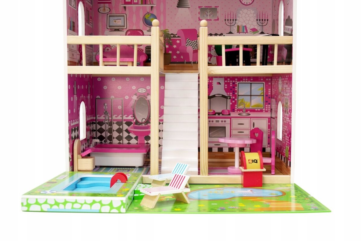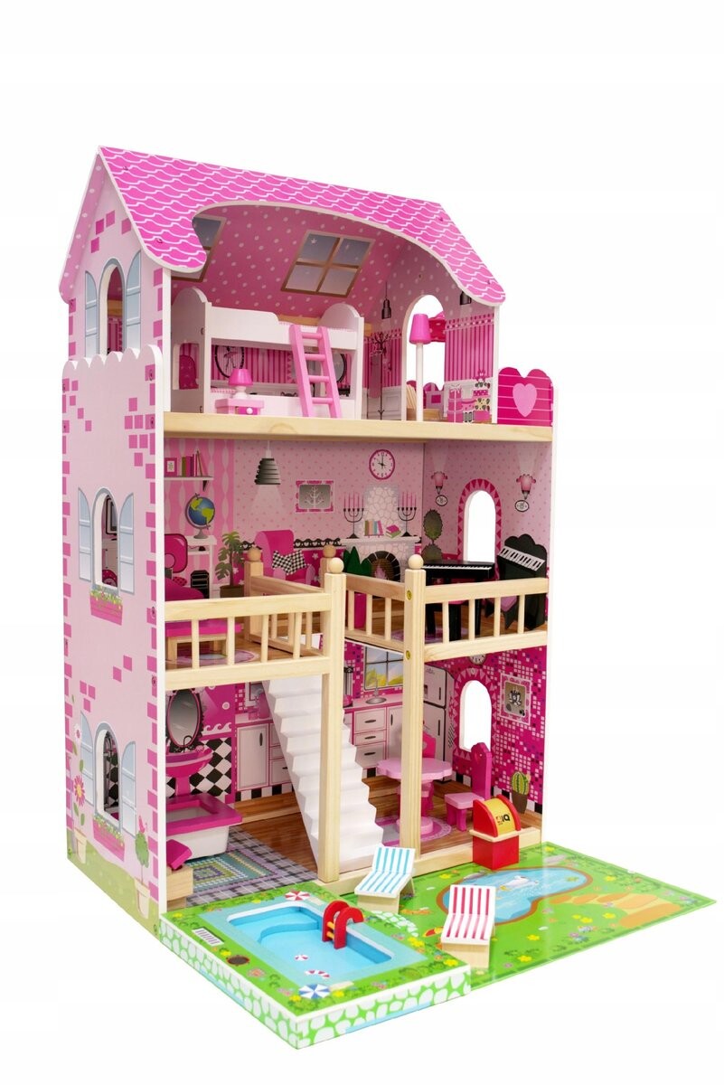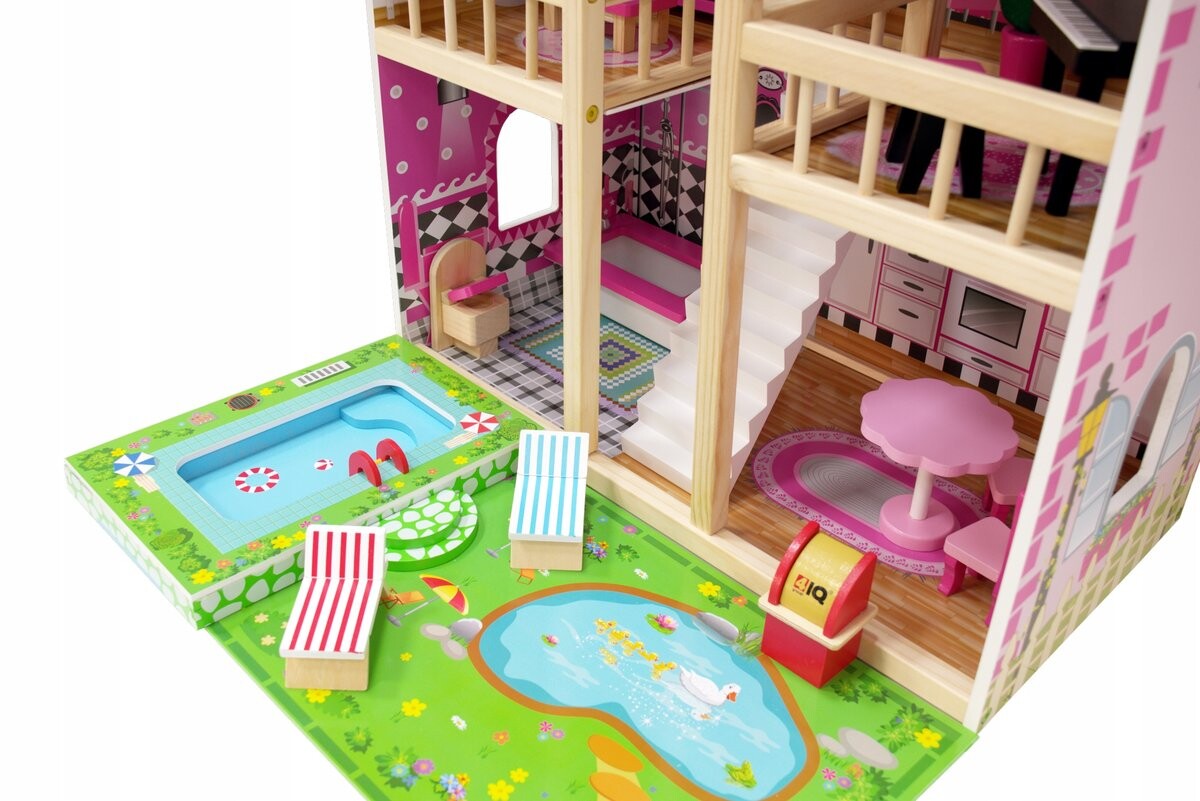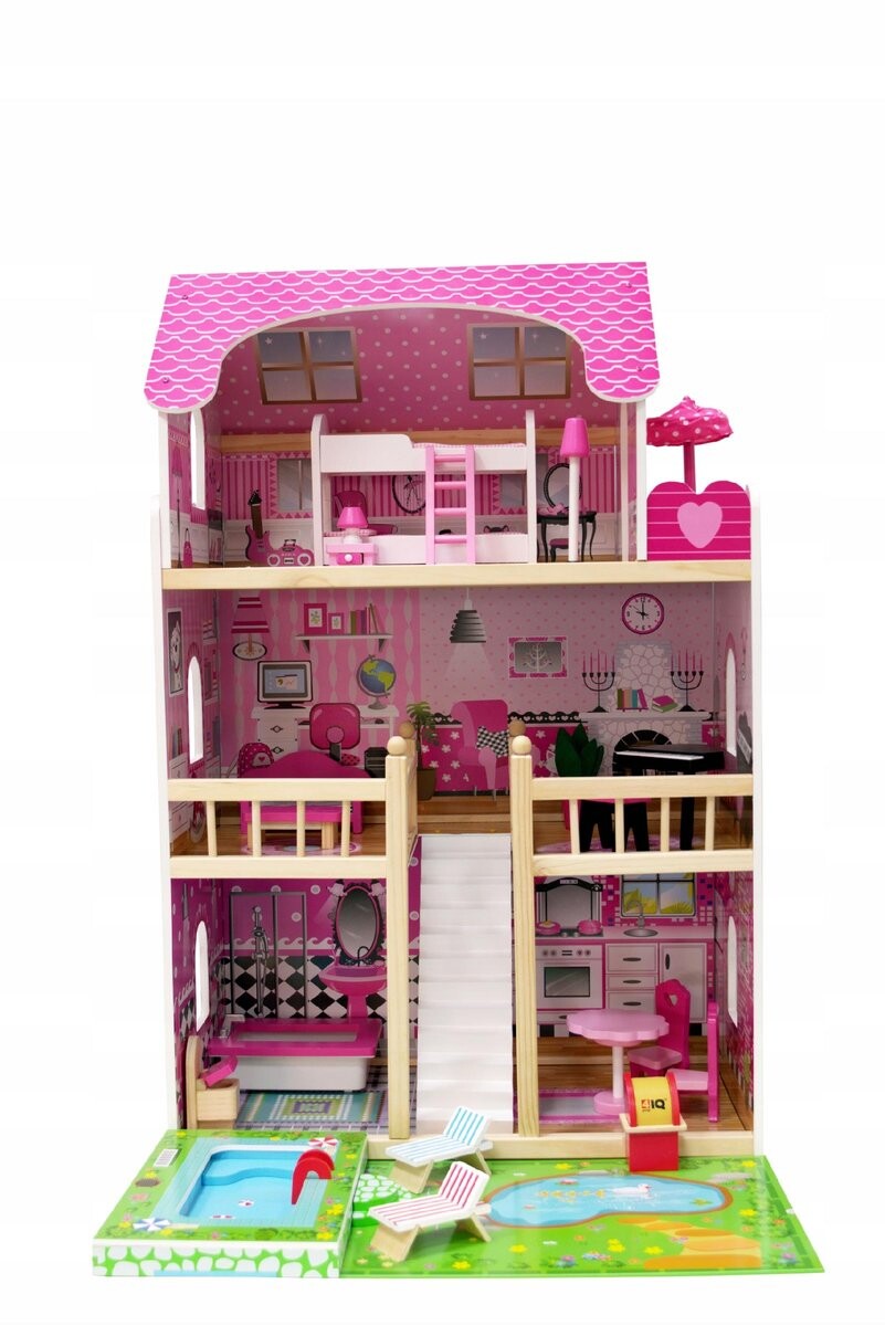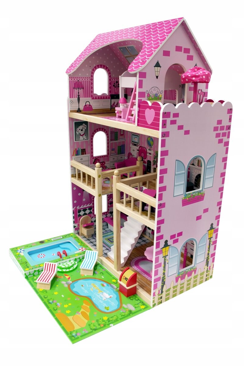 Дом соответствует стандарту EN71 для детских игрушекДеревянный дом ДАРЬЯ с большим бассейномЗамечательный розовый кукольный домик с бассейном – подарок-мечта для многих девочек.