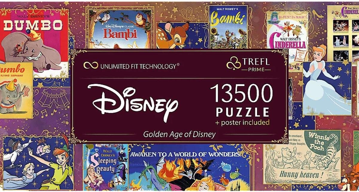 Puzzle Golden Age of Disney содержит коллекцию плакатов и иллюстраций, известных по мультфильмам Диснея.
