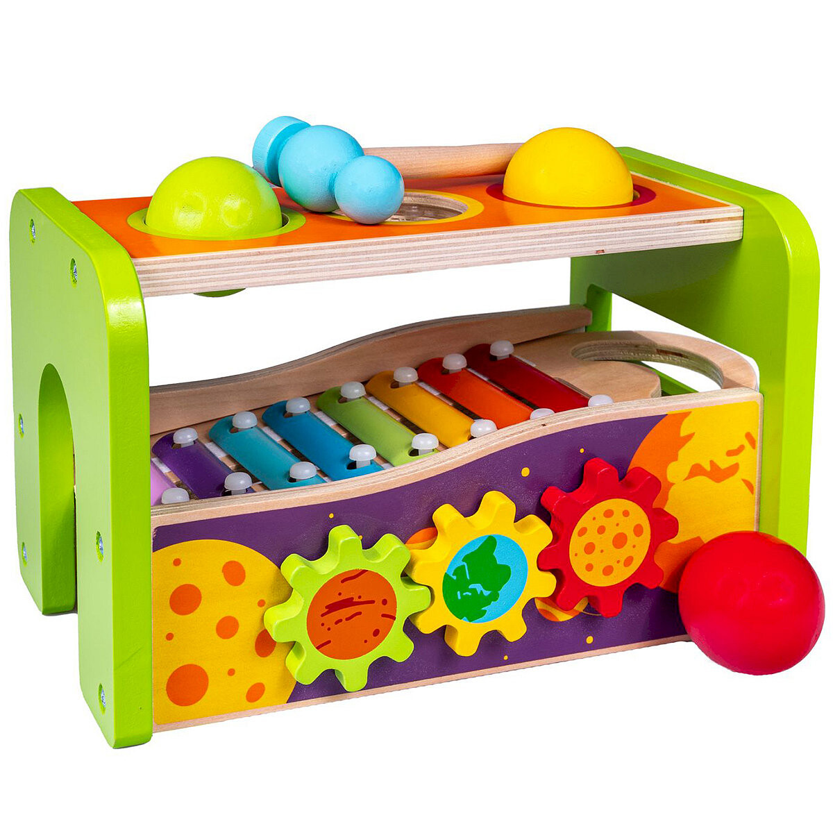 Smily Play — игрушки, созданные для самых маленьких. ДЕРЕВЯННАЯ ИГРУШКА С КУБКАМИ И МОЛОТОКОМ ДЕРЕВЯННАЯ ИГРУШКА-ПЕРСОНАЛ — это красочная деревянная игрушка, которая идеально подходит для двухлетнего ребенка. Развивает зрительно-моторную координацию и пространственное воображение. В комплект входят шарики, которые можно пробить молотком в соответствующие отверстия. Вы также можете играть на тарелках молоточком, которые являются дополнительной привлекательностью этой игрушки. Инструмент имеет деревянную основу и металлические пластины с веселым узором, из которых ребенок будет издавать приятные звуки. На коробке красочные шестеренки, малыш может вращать и передвигать, тренируя свои мизинцы. Все сделано из качественного дерева. Покрыты нетоксичными красками и лаками. имеет необходимые допуски и сертификаты. Отсутствие острых краев позволит вашему ребенку безопасно играть. В комплекте: три деревянных разноцветных шарика, молоточек, которым можно пользоваться и при игре на тарелках, тарелки на деревянной основе. Игрушка развивает: интеллект, творческие способности, навыки ручного труда, обостряет внимание. СПЕЦИФИКАЦИЯ: Код продукта: SPW83694 EAN: 5905375836948 Возраст: 2 года Размеры коробки: ширина Высота 24,5 смx 14,7 см х глубина Размеры 12,5 см тарелка: длина 25смx ширина 12 см х глубина Размеры 1 см молоток: длина Анек для детей 13см x 6см Smily Play