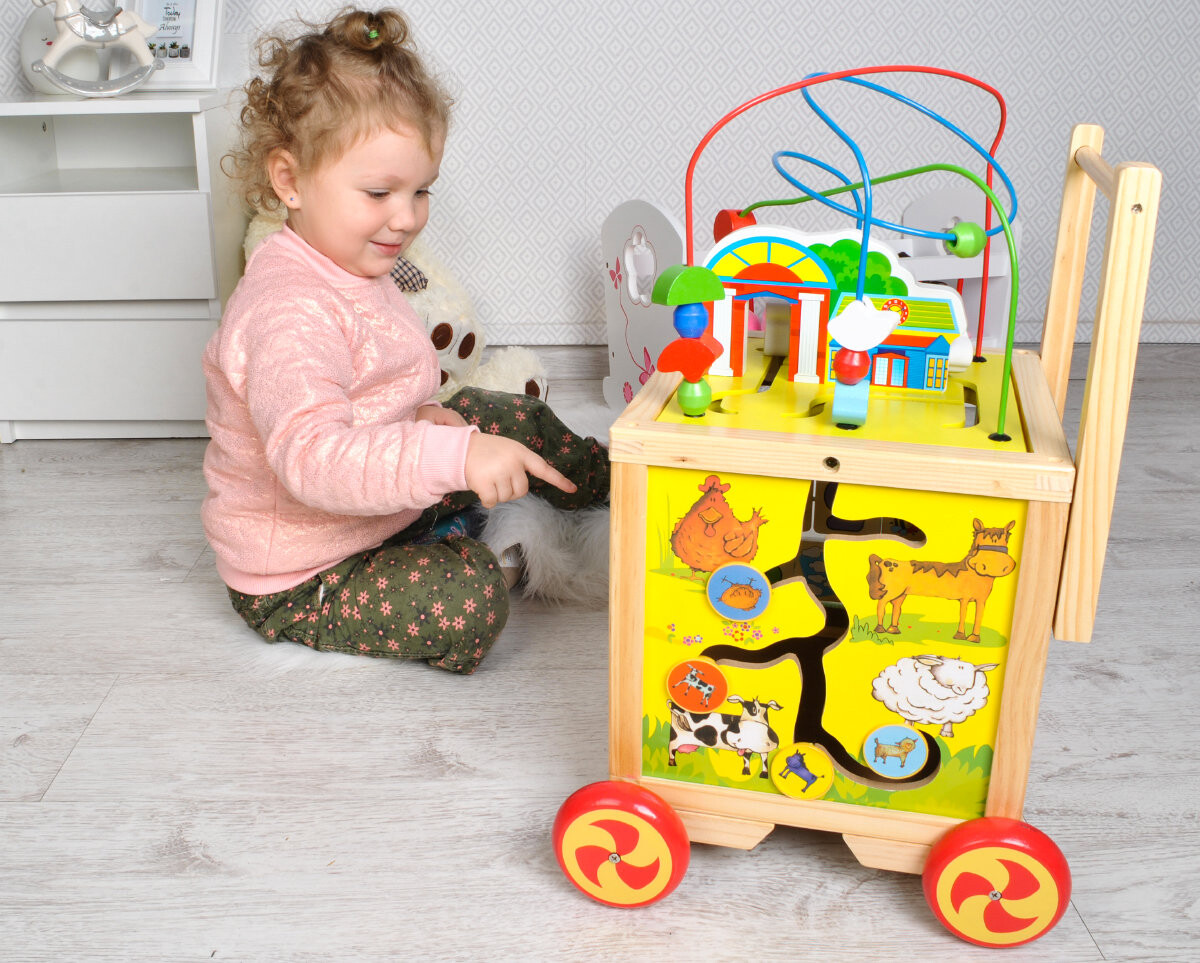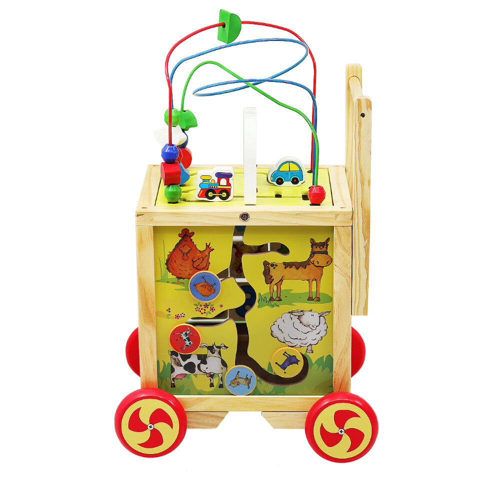 Игрушка-толкатель с развивающим кубиком положительно влияет на развитие ребенка и в то же время подарит массу улыбок и веселья. Ребенок толкает игрушку перед собой и учится делать первые шаги и совершенствовать приобретенный навык. Благодаря специально разработанному кубику ребенок развивается в самых разных сферах.ДЕРЕВЯННАЯ РУЧКА НА КОЛЕСАХ — МОБИЛЬНЫЙ РАЗВЛЕКАТЕЛЬНЫЙ ЦЕНТР 6-В-1