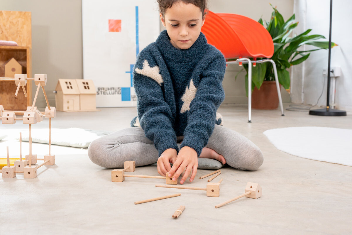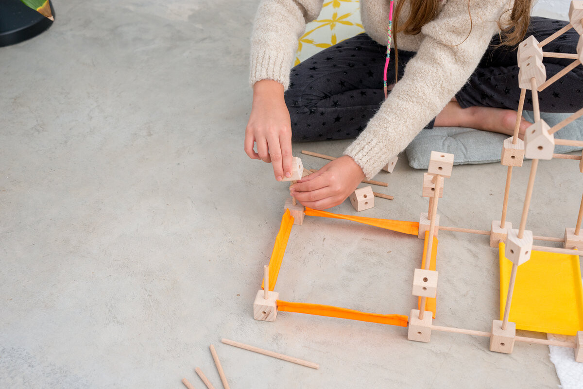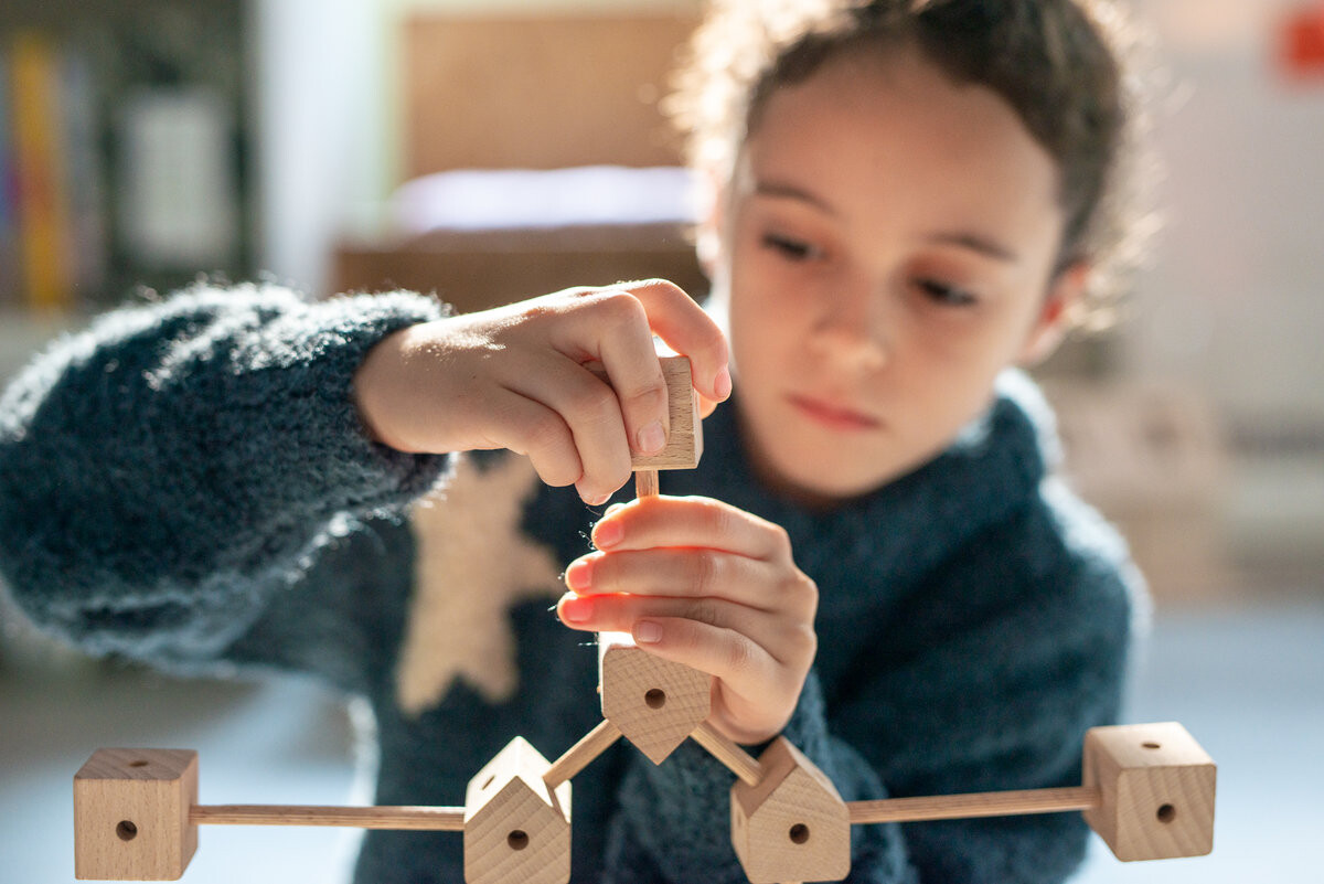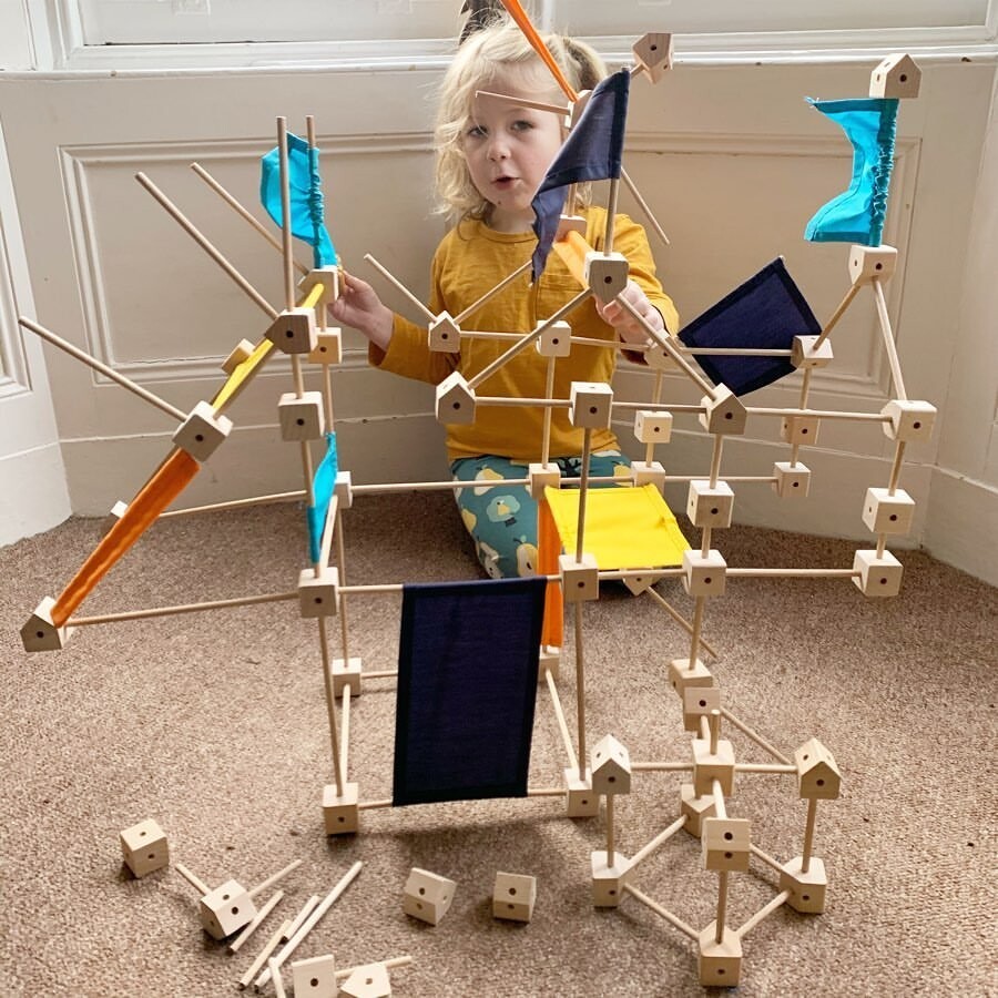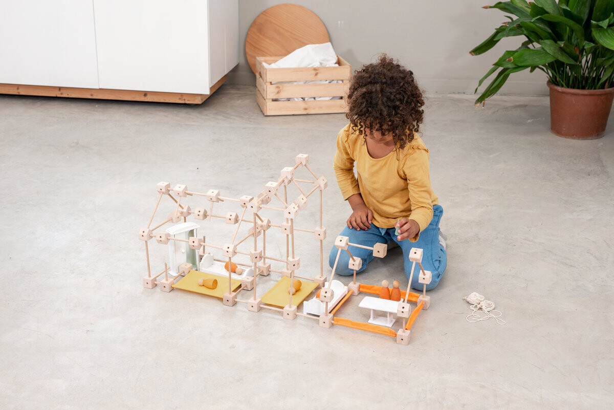 Создавайте конструкции и геометрические фигуры, комбинируя деревянные элементы! Mini Trigonos — это набор деревянных и материальных строительных элементов: палок, блоков и ткани, которые можно легко комбинировать для создания различных построек.