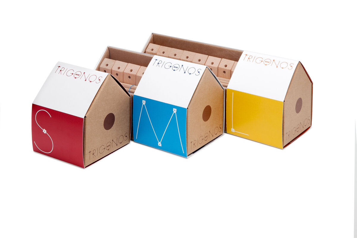 Набор строительных блоков Mini Trigonos — это игрушка, которая позволяет детям изучать геометрию приятным и естественным способом. Соединяя элементы под разными углами (45°, 90° и 135°), дети могут развивать свои творческие способности и математические способности. Набор также позволяет визуализировать множество геометрических фигур и тел и проверить вероятность теоремы Пифагора.
