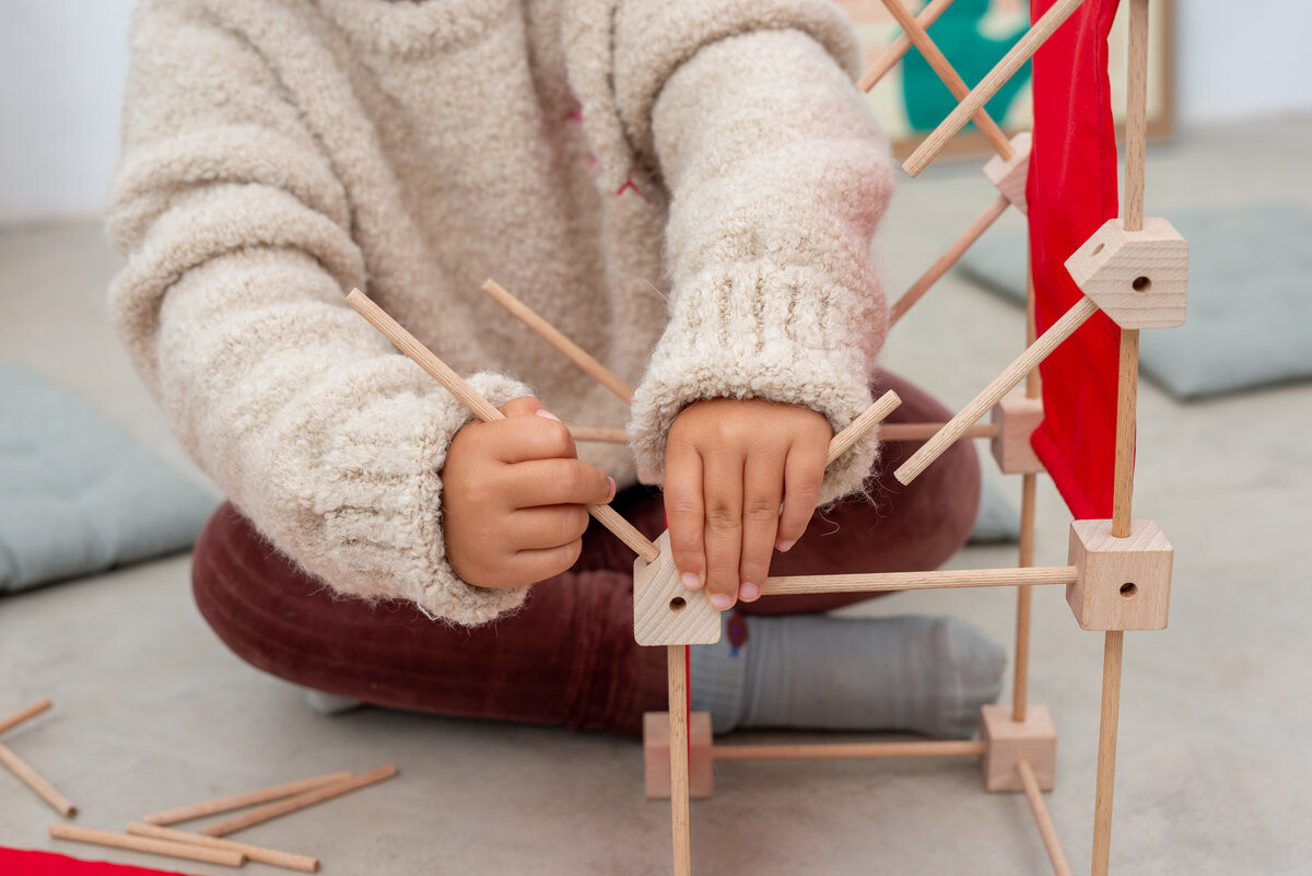 Создавайте конструкции и геометрические фигуры, комбинируя деревянные элементы! Mini Trigonos — это набор деревянных и материальных строительных элементов: палок, блоков и ткани, которые можно легко комбинировать для создания различных построек.
