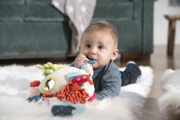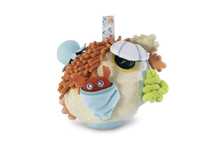 Сенсорная стимуляция – одна из самых важных и лучших вещей для вашего ребенка. Им будет очень весело смотреть, трогать, кусать и слушать звуки этого мягкого кораллового рифа. Начать открывать тайны рифа можно с встряхивания погремушки в форме осьминога. Пусть ваш ребенок с раннего возраста откроет тайны океанских глубин! Мультисенсорные элементыИгрушка содержит множество элементов, развивающих чувства ребенка: различные приятные на ощупь текстуры, идеальные прорезыватели для десен, мягкая съемная погремушка, великолепные контрастные цвета и зеркало. Съемная погремушка Маленький осьминог будет очень легко брать в руки маленьким ручкам вашего ребенка, а его приятный звук будет способствовать развитию слуха. Для прогулок, поездок или дома В комплект входит практичный ремень для подвешивания на коляску, кроватку или другой элемент. так что вы сможете удобно брать игрушку с собой куда угодно. Дети научатся уважать мир, в котором мы живем. Играя, дети с раннего возраста узнают, как важно заботиться о дне океана и окружающей среде, в которой они живут.