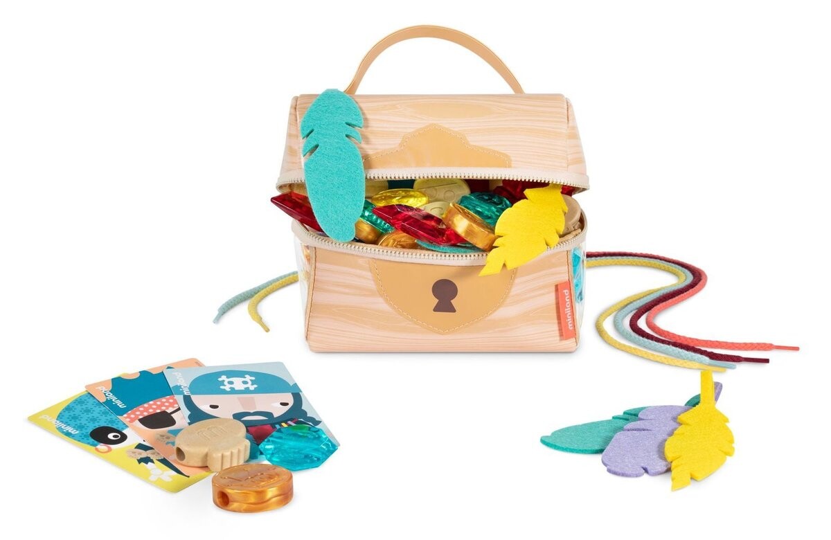 Большой пиратский клад с фурнитурой для нанизывания ожерелья. Различные формы и цвета непременно заинтересуют каждого ребенка и обеспечат творческую активность на долгое время. Все упаковано в удобную коробочку с ручкой, напоминающую сокровище, которую можно брать с собой куда угодно. Благодаря игре с нитками у ребенка будут развиваться творческие способности, пространственное воображение, мануальные навыки, точность движений, логическое мышление, воля. также изучите формы и цвета бриллиантов, рубинов, черепов, перьев, удобный сундучок с ручкой, который можно брать с собой в любое место в наборе карточек с образцами дизайнов ожерелья.