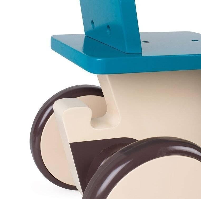 Детский трактор-трактор сконструирован таким образом, что даже самые маленькие дети (сразу после 1 года) без проблем встают и садятся. на сиденье. Это потому, что они размещены на соответствующей высоте 21 см. Ездой очень легко управлять, поэтому ее можно использовать как на идеально ровном полу дома, так и на неровных поверхностях во дворе. Деревянный руль полностью функционален и им можно пользоваться в обычном режиме, а красная кнопка позволяет использовать звуковой сигнал. Символически нарисованный двигатель, счетчик и индикатор топливного бака делают машину более реалистичной и делают игру еще более интересной. Катание учит вашего ребенка улучшению координации движений. баланс и улучшает его моторику. Откройте для себя мир игрушек Janod