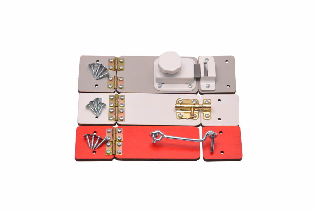Подвижные элементы доски — разнообразные защелки — это способ поддержать развитие вашего малыша и предложить множество идей для развлечения. Ребенок самостоятельно проверяет, что произойдет, если он ее сдвинет или закроет. повороты – в ребенке пробуждается внутренний исследователь, и он учится точному хвату и терпению.