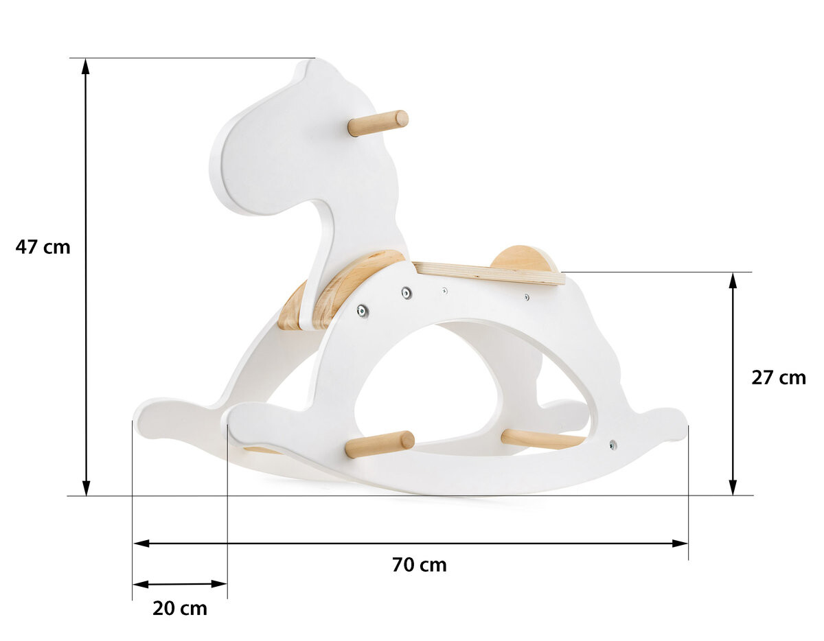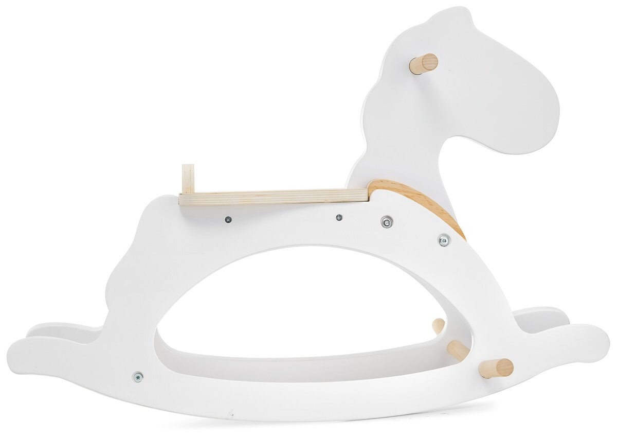 Лошадь-качалка – это, несомненно, звезда среди игрушек и мечта каждого ребенка. Классика, которая спустя много лет становится символом детства и беззаботного веселья. Наша версия этой культовой игрушки отличается минималистичным дизайном. Универсальное сочетание белого цвета с естественным оттенком светлого дерева гарантирует идеальное вписывание в любой интерьер.