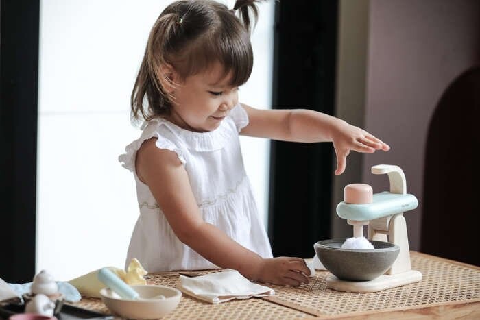 С его помощью можно приготовить любой торт, который подаст родным за полдником. Сливочное масло, мука и яйцо — ингредиенты, которые умелый кондитер в кратчайшие сроки превратит в домашнее лакомство! Набор прекрасно подходит для развития творческих способностей и воображения, а также позволяет играть роли.