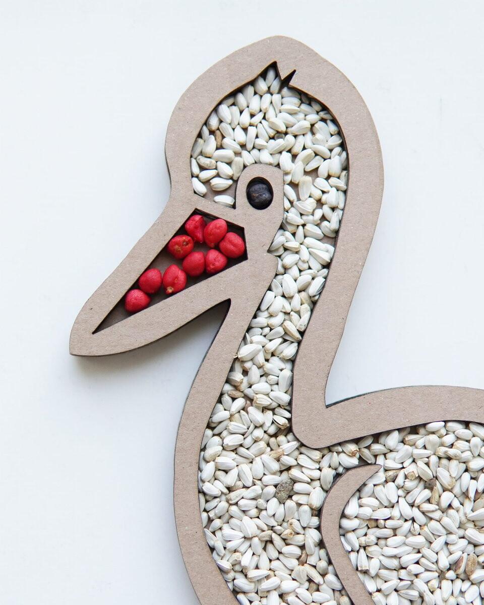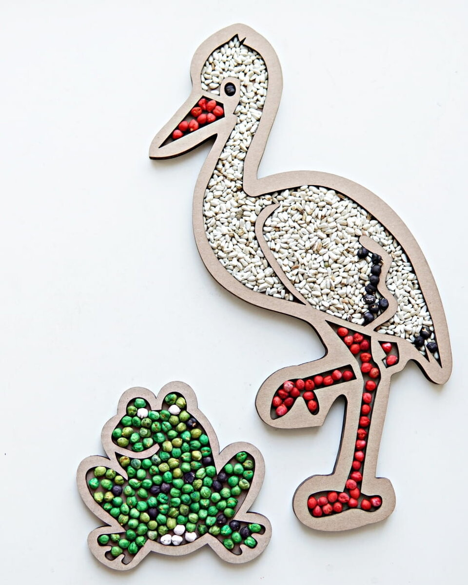 Набор состоит из картонной модели аиста, одной упаковки фасоли карди и одной упаковки крашеного нута.