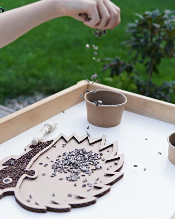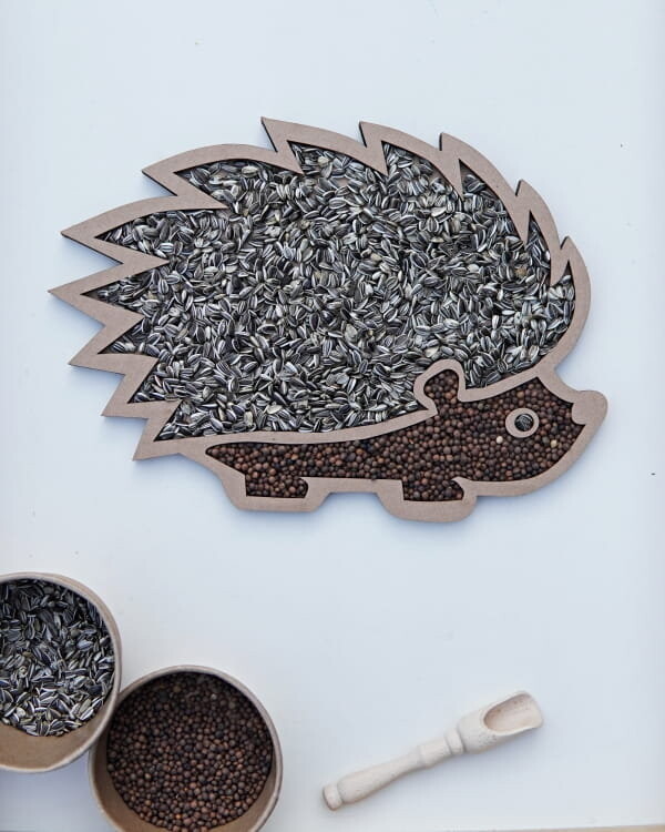 Набор состоит из картонной просыпи, одной упаковки полосатых семечек и одной упаковки вики коричневой.