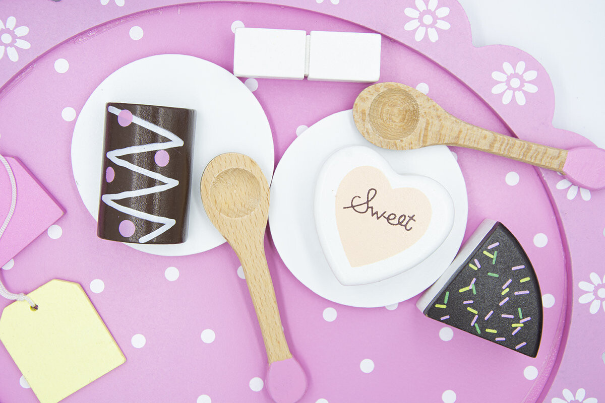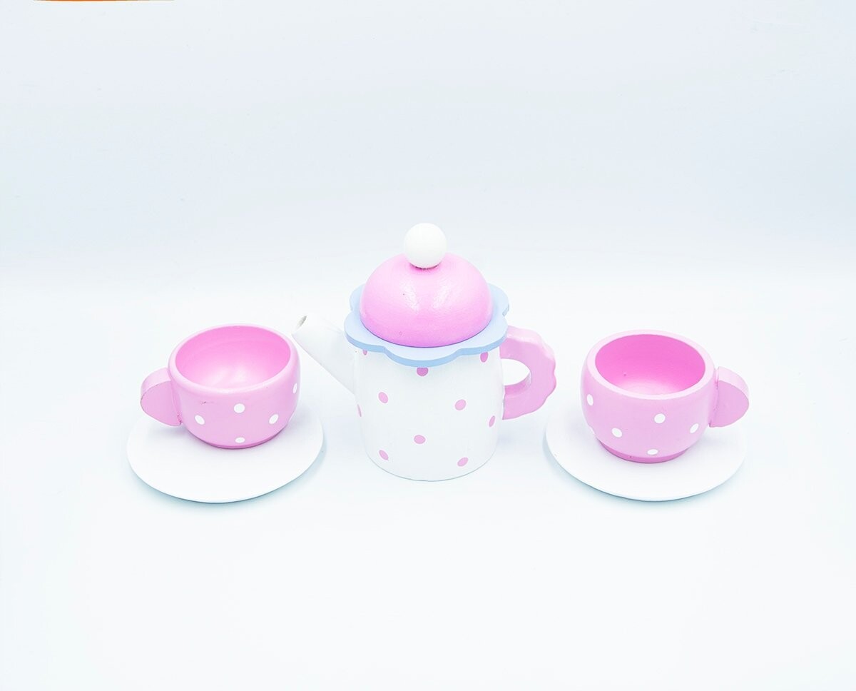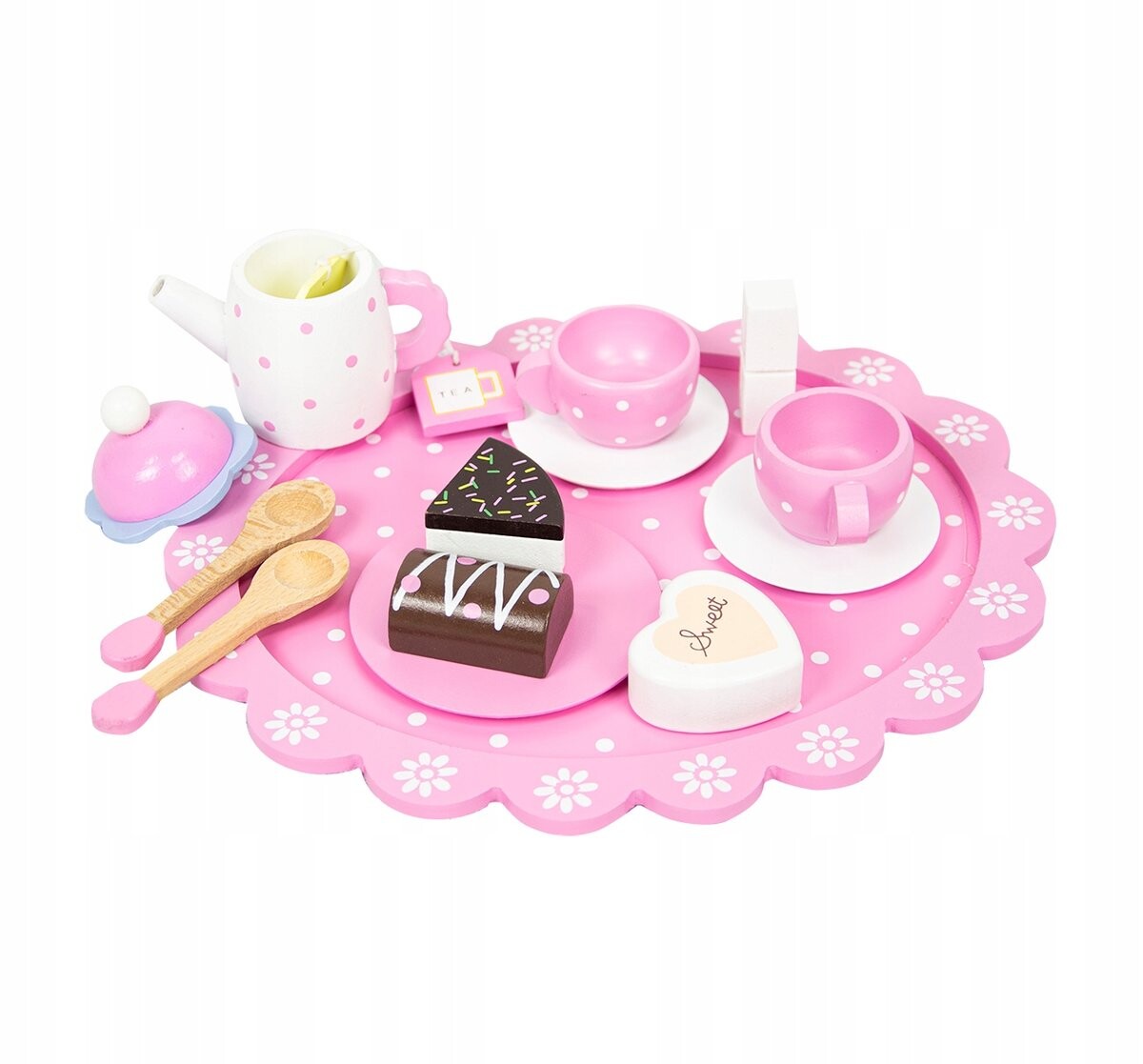 Деревянный чайный сервиз – отличная игрушка, которая позволит вашему ребенку устроить лучший праздник и доставить массу удовольствия! В комплект входят кувшин и две чашки, которые непременно продлят вечеринку и позволят насладиться вкусным чаем в компании друзей. Кроме того, сервис оснащен различными вкусняшками, которые сделают времяпровождение еще приятнее. Все красиво оформлено розовый поднос с цветами.