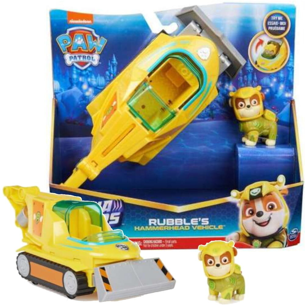 С этой игрушкой ваш ребенок сможет пережить замечательные приключения вместе с любимыми героями сериала. На фигурке изображен Раббл – житель города, который работает водителем строительной техники. Он одет в характерный желтый наряд с зелеными элементами. Его высота около 7 см, подвижная голова, что позволит ребенку играть в разнообразные игры и придумывать новые приключения. На подводной лодке есть капсула, в которую можно поместить собаку.