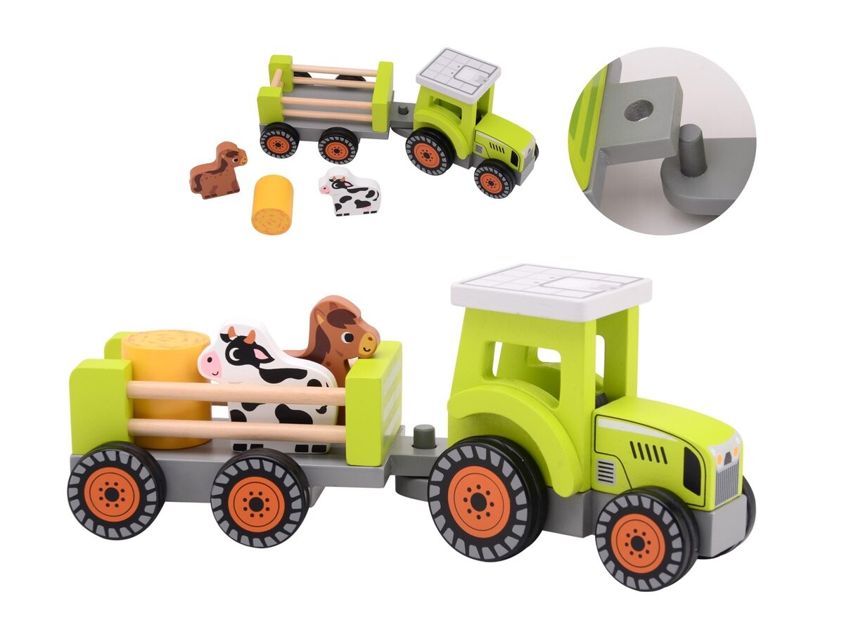 Деревянный трактор JOUECO с прицепом и животными