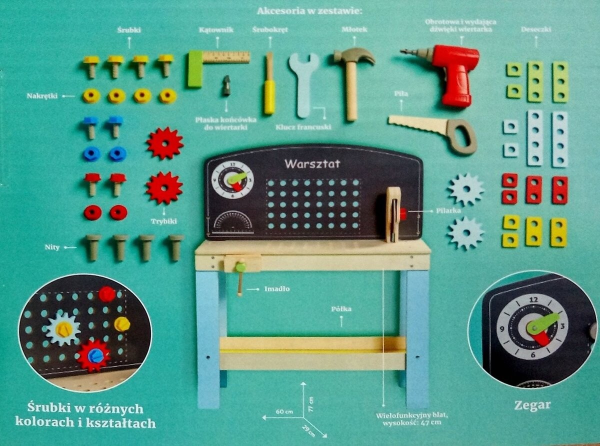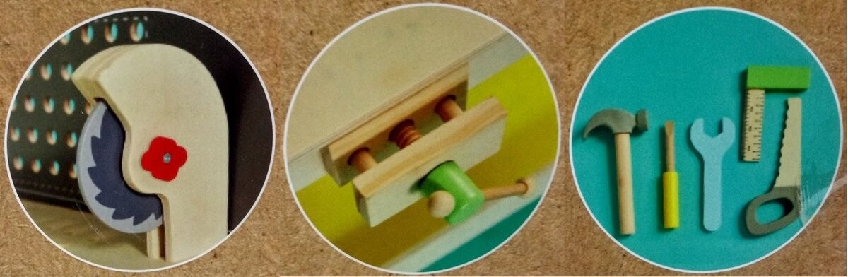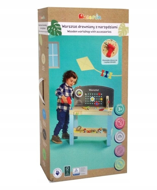 Деревянная мастерская с инструментами от Elefun Toys, которая наверняка доставит массу удовольствия каждому маленькому любителю DIY. В набор входят такие инструменты, как тиски, пила, пила, молоток, гаечный ключ, отвертка, угольник и вращающаяся и звучащая отвертка, а также набор разноцветных винтов и гаек. Мастерская изготовлена из дерева, что обеспечивает устойчивость, долговечность и безопасность использования. Игрушка имеет сертификаты CE, FSC, TUVRheinland и положительное заключение Института матери и ребенка.