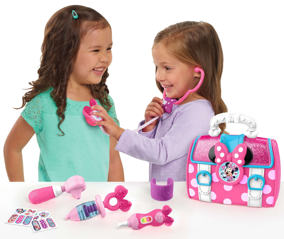 Набор содержит 8 элементов, которые позволят любителям Минни Маус сыграть роль врача и помогать куклам и талисманам.