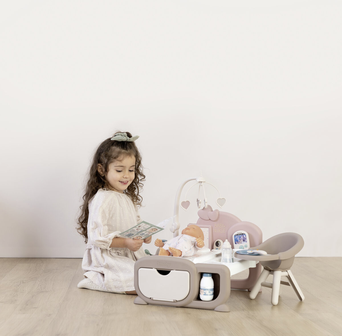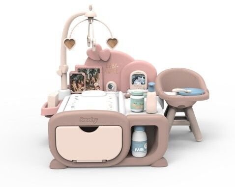 Электронный уголок детской медсестры Smoby Baby Nurse Электронный уголок детской медсестры Baby Nurse имеет три игровые зоны: кухню со стульчиком для кормления, зону ухода с пеленальным столиком и спальню с каруселью над кроватью, которая делает засыпание более приятным. Эргономичная функциональность уголка Baby Nurse оснащена реалистичными аксессуарами, которые обогащают удовольствие, позволяя ребенку почувствовать себя настоящей мамой или няней. Множество вариантов ролевых заданий для маленькой няни – есть все для эффективного кормления, смены подгузников, укладывания спать, измерения температуры и введения лекарств. Полки облегчат организацию вашей работы. Все необходимое под рукой: маленькая няня найдет целых 20 аксессуаров, среди которых: в . бутылочка для кормления, подгузник, термометр, ложка, пластыри, косметика и ящик. это помогает поддерживать порядок. Звуковые функции: набор оснащен имитацией камеры и электронной радионяней со звуком для повышения реалистичности ухода за куклой (в комплект не входит). Электронный уголок «Няшка» – интерактивная игрушка, которая познавательно показывает детям, как выглядит ответственность и требующий внимания уход за малышом. Smoby — французский игрушечный бренд, ценимый родителями, который с 1924 года ставит здоровое развитие детей в качестве приоритета. Репутация бренда Smoby построена на соблюдении строгих производственных стандартов безопасности игрушек. Многолетний опыт и использование высококачественных материалов, а также высокая экологическая осведомленность подтверждают ее компетентность. Разнообразие ассортимента Smoby включает в себя прочные и безопасные детские домики, садовые игрушки, каталки, игровые уголки и развивающие игрушки Little Smoby для малышей.