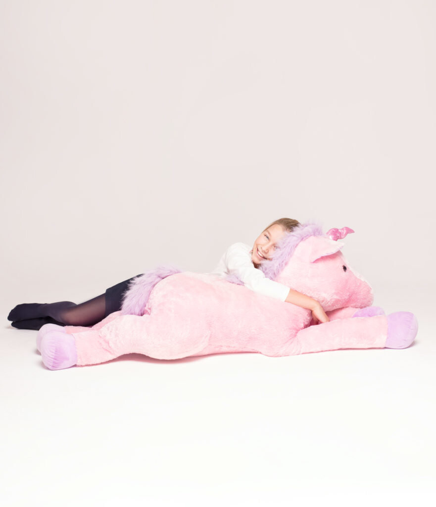 Девочки любят волшебных лошадок с пушистой гривой и хвостом – они пользуются успехом во всех детских садах и школах. Белый или розовый плюшевый единорог быстро станет любимой игрушкой.