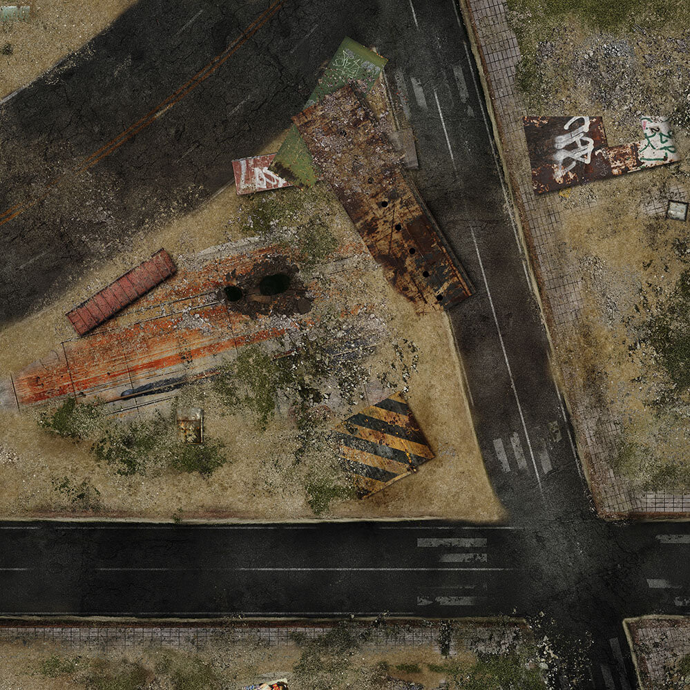 На коврике изображены дороги постапокалиптических пустошей.