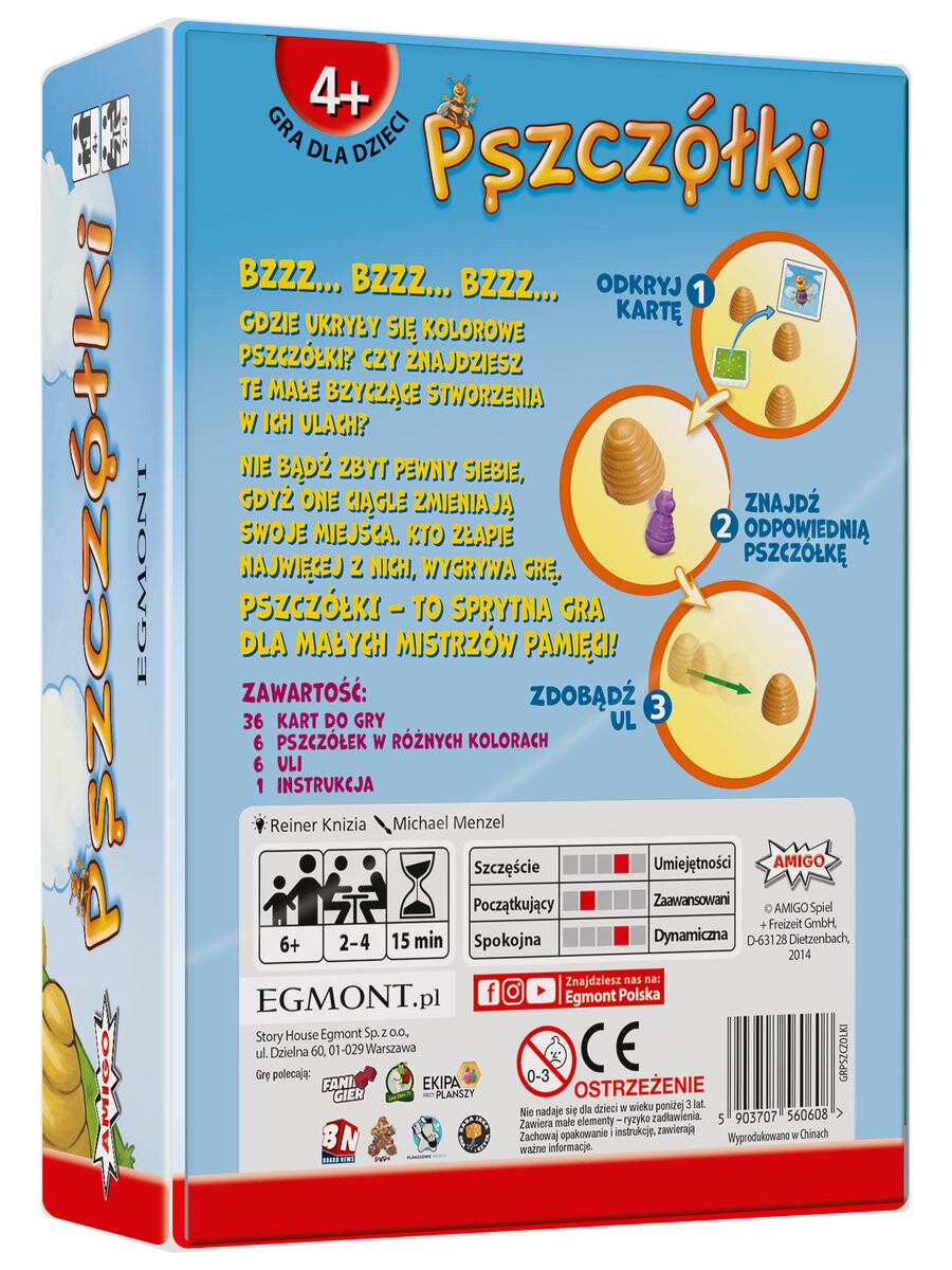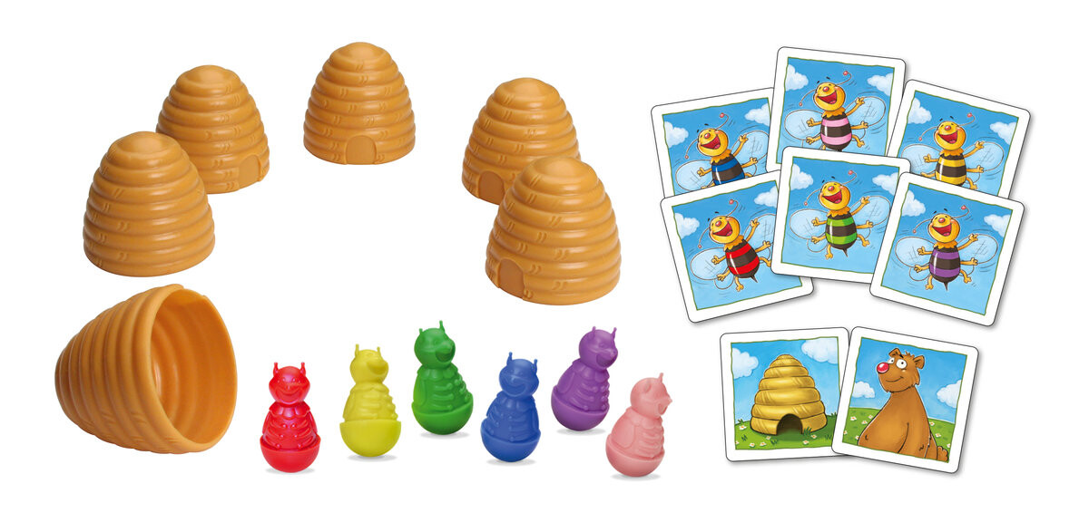 Цель игры — собрать как можно больше пчел в конце игры. Игроки переворачивают карточки с картинками и пытаются угадать, где находятся разноцветные пчелы. На картах могут быть изображены пчелы, улей или медведь. Вам потребуются отличная наблюдательность и отличная память, чтобы найти пчелу того цвета, который указан на карточке. Побеждает тот, кто первым соберет четыре улья, и получит вкусный мед.