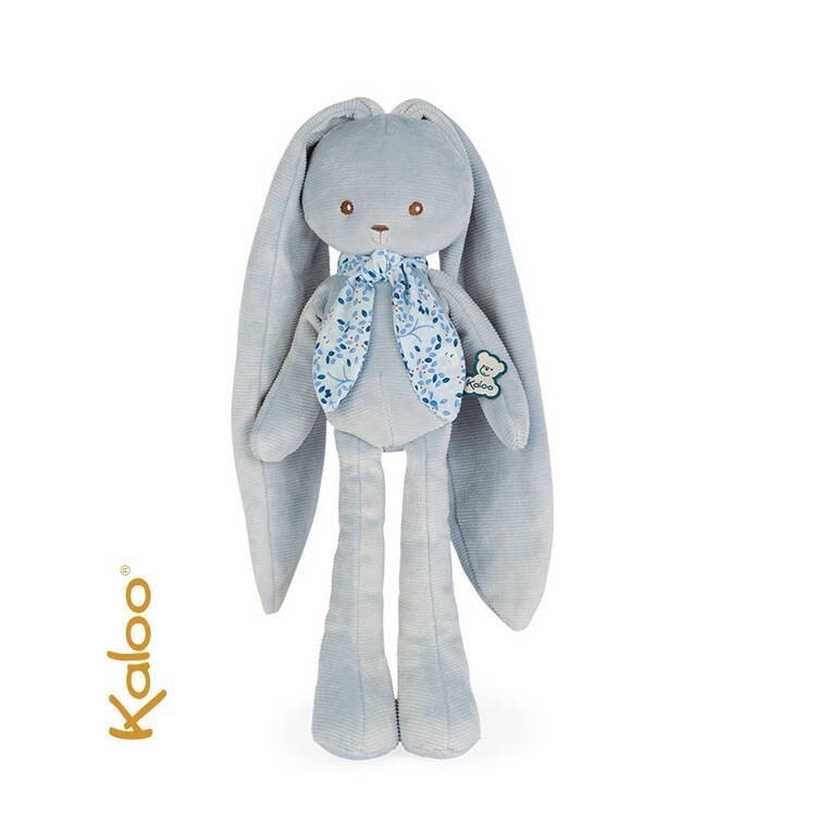 Очаровательная мягкая игрушка «Кролик» от французского бренда KALOO – идеальная игрушка для вашего ребенка, безопасная с первых дней жизни. Он очень мягкий, красивый и идеально обработанный. Большой, бледно-голубой кролик, очень приятный на ощупь, имеет длинные ноги и очень длинные уши, с помощью которых его можно привязать к ручке коляски или перекладинам кровати, а также носовой платок с узором из мелких листьев, завязанный в узел. под его шеей. Он станет отличным компаньоном для вашего малыша: его можно будет обнимать, укладывать спать, успокаивать, брать на прогулки и в поездки. У него вышиты глаза и рот.