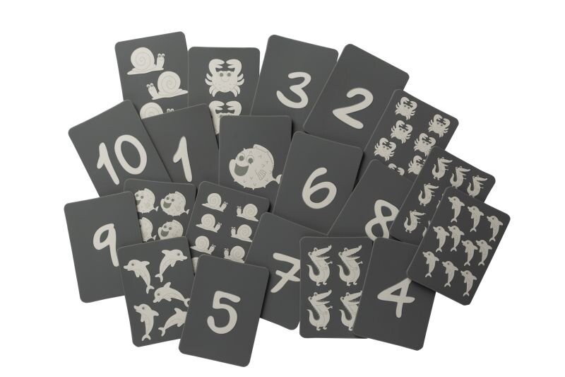 Способность считать и понимать числа очевидна для большинства из нас. Scrunch знает это, и именно поэтому мы создали Scrunch-карты, которые учат через развлечение. Они могут функционировать как головоломки, состоящие из двух частей, их можно расположить по значению, по возрастанию или убыванию, а также использовать как очень популярную игру на развитие памяти. В наборе 20 карточек. 10 карточек представляют собой числовые карточки, на которых указаны цифры от 1 до 10, а остальные 10 карточек содержат изображения животных, номера которых соответствуют цифрам на числовых карточках. Карты изготовлены из силикона, во влажном состоянии они прилипают к гладким поверхностям, таким как ванна или плитка.