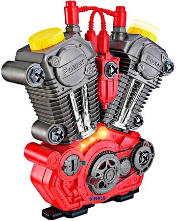 Двигатель состоит из множества элементов и учит наших детей правильному и верному функционированию двигателя таким, какой он есть на самом деле. Поршни вращаются при вращении кривошипа, двигатель закручивается и откручивается, а заниматься этим приходится нашему маленькому механику.