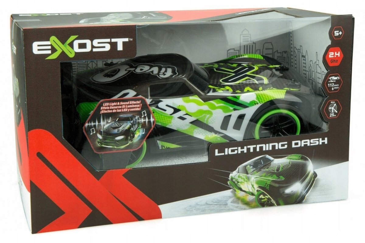 В свете огней прибывает Lighting Dash с дистанционным управлением, готовый к сумасшедшему ралли! Транспортное средство оснащено световыми и звуковыми эффектами, что делает игру с ним еще более реалистичной. На шасси имеются дополнительные зеленые огни. Автомобиль работает на частоте 2,4 ГГц. В комплект входит машинка и пульт дистанционного управления.