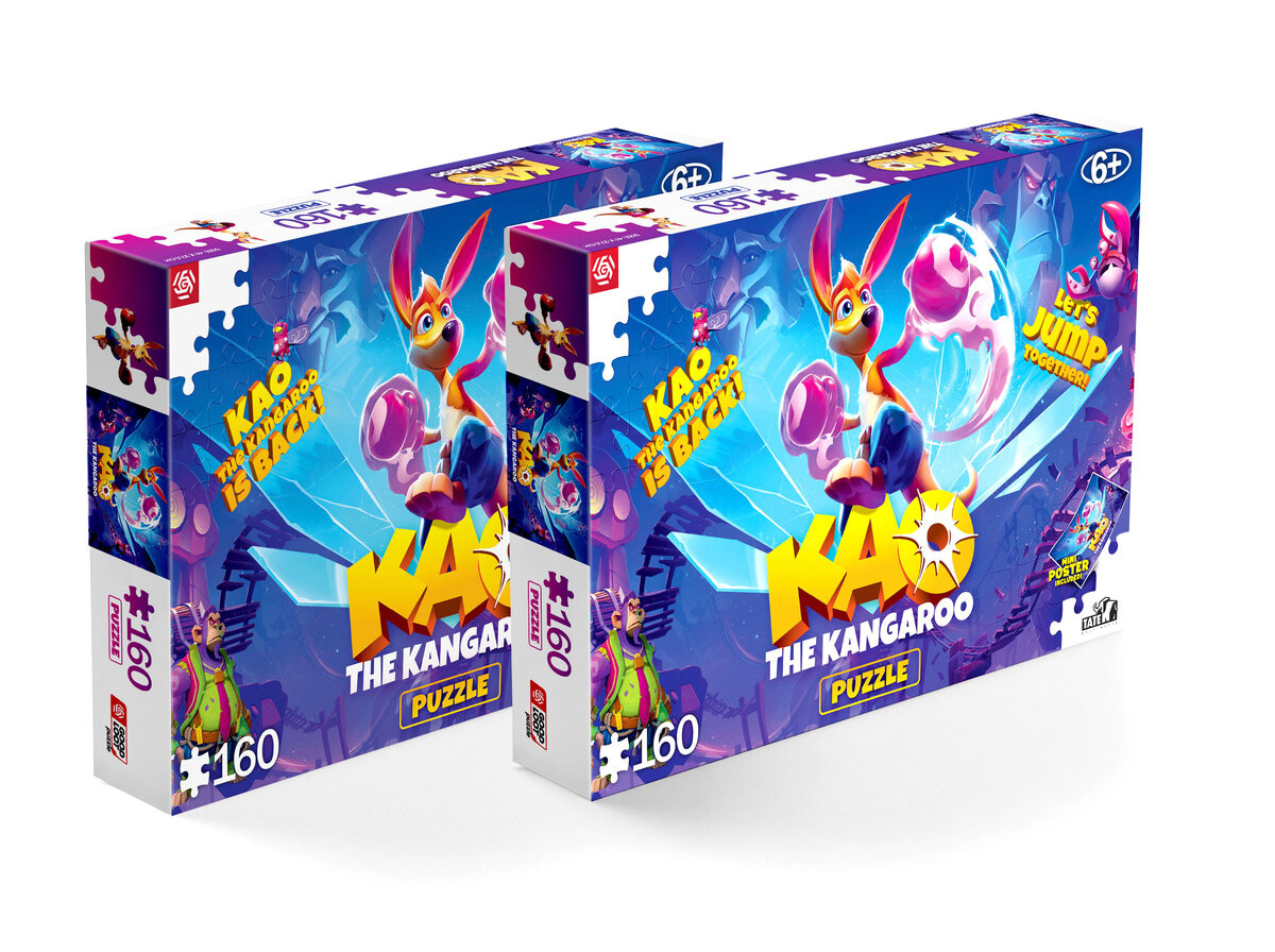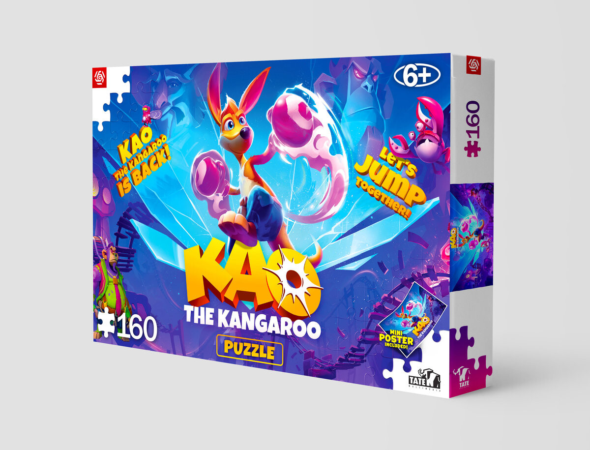 Присоединяйтесь к кенгуру Као и отправляйтесь в чудесное путешествие — соберите исключительно красочный и красивый пазл, состоящий из 160 элементов. После сборки будет создана картинка размером 41 х 27,5 см, изображающая персонажей последней игры Кангурек Као.