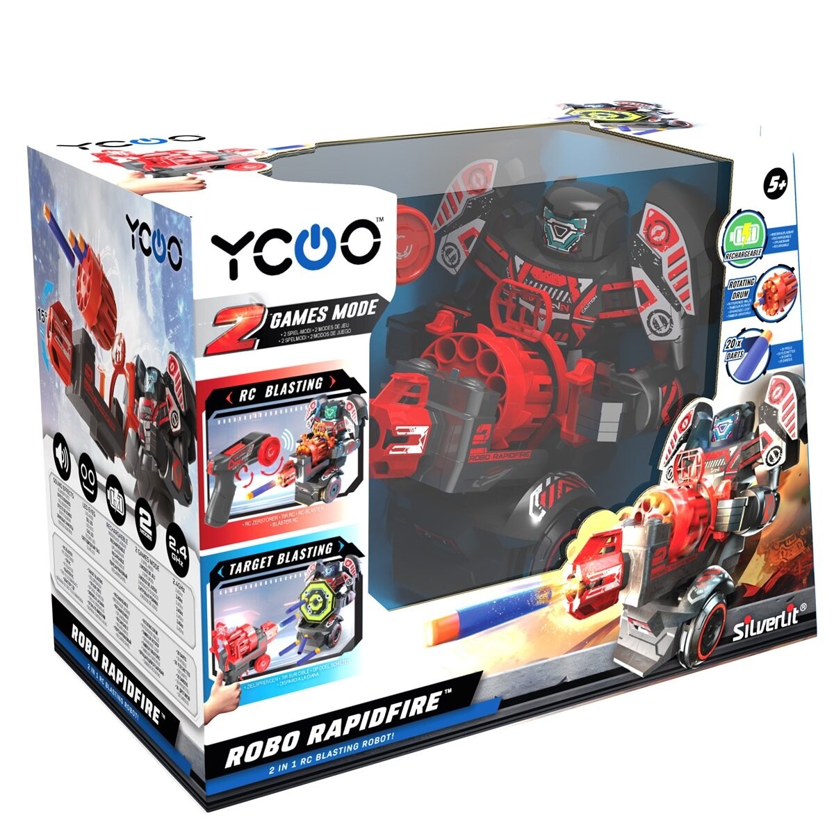 Время тренировки точности с многофункциональным Robo Rapidfire! Дистанционно управляемый робот оснащен специальным метателем, набором соответствующих снарядов и дисками прицеливания. Управление игрушкой осуществляется с помощью прилагаемого пульта дистанционного управления. Это еще не все! Ракетную установку можно отсоединить от робота и прикрепить к пульту дистанционного управления, превратив ее в большую пусковую установку. Robo Rapidfire издает звуки, которые делают веселье более привлекательным.
