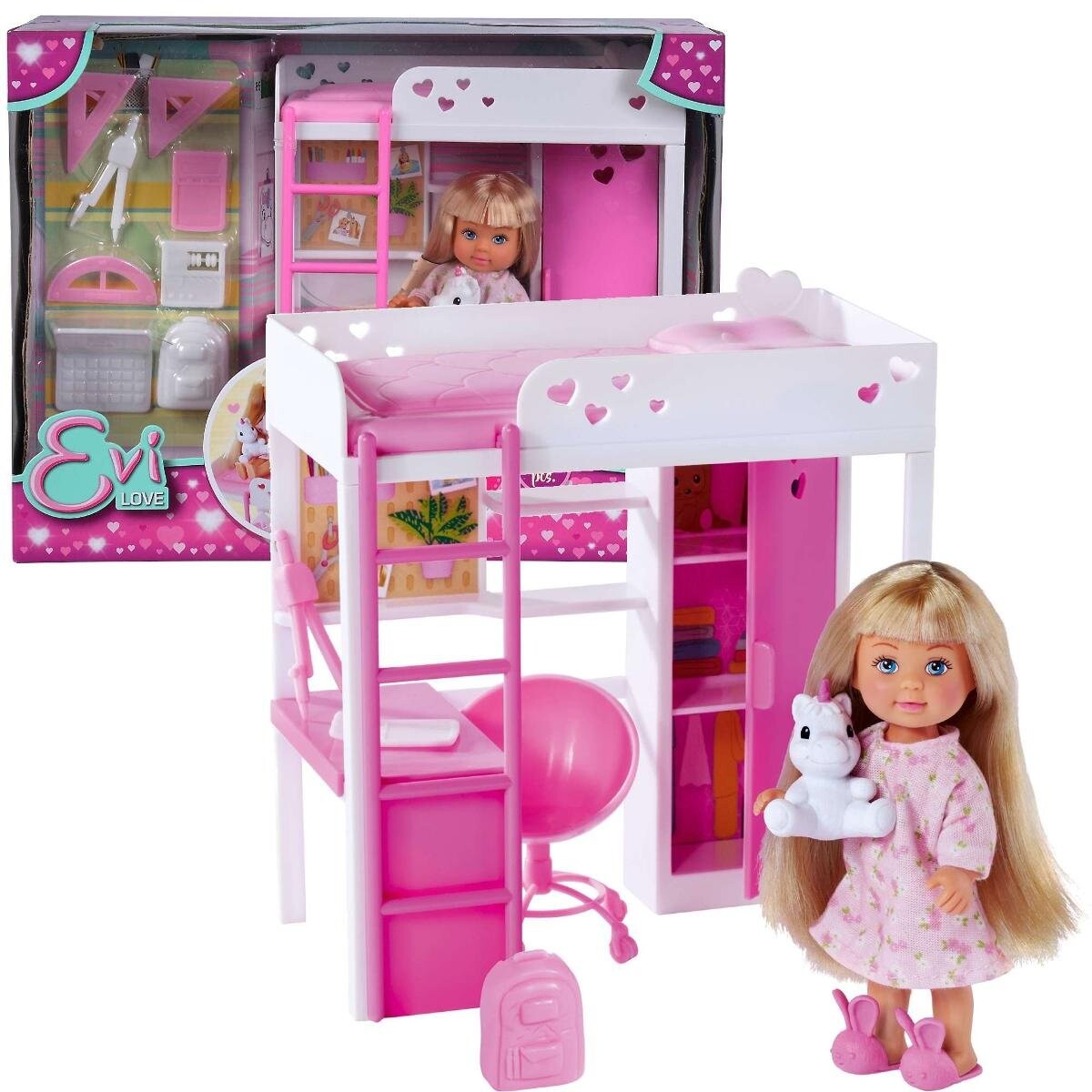 Это набор, созданный брендом Simba, который высоко ценится за соотношение цены и качества. Игрушка входит в серию Evi Love, в которую входят куклы, изображающие дочь Штеффи и ее друзей, а также различные домики, мебель и аксессуары для них.