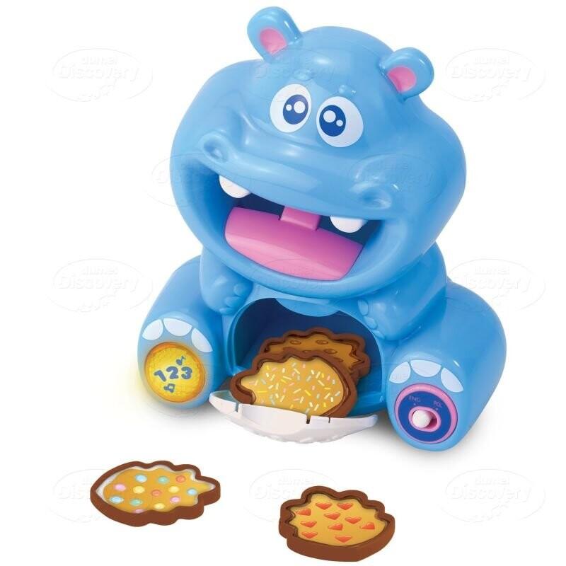 Печенье-Бегемот издает забавные звуки и мелодии, а после того, как он закончит есть, вы можете вытащить печенье из его живота и начать играть снова! На животе Бегемота есть цифры от 1 до 10, поэтому вы можете показывать их пальцем во время кормления или счета с Гиппо. чтобы ребенок ознакомился с внешним видом каждой цифры. Помимо игрушки Бегемот, в набор входят 5 печенек, которыми можно его кормить.