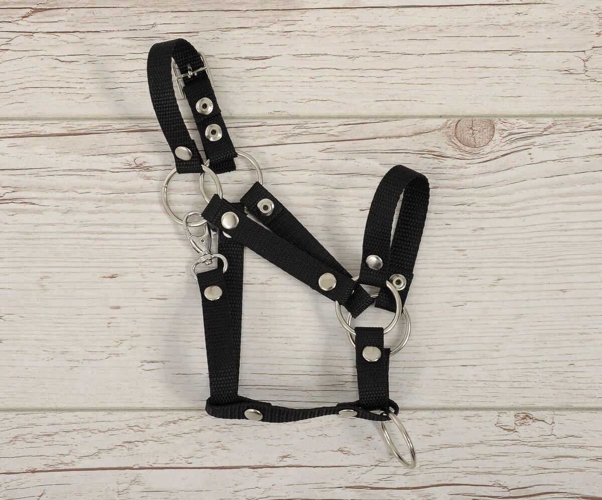 Практичный и прочный недоуздок для хобби-лошади. Изготовлен из прочной ленты высочайшего качества шириной 1,5 см. Застежку можно отрегулировать по размеру лошади. Легко застегивается карабином. Металлические элементы бретеля, такие как кнопки, металлические кольца, регулируемая пряжка и застежка-крючок серебристого цвета. В целом элегантно и практично. Недоуздок удобен в использовании, прочен, устойчив к загрязнениям. Теперь недоуздок также имеет все края усиленные и оплавленные, защищенные от распутывания ленты под заклепками. В предложении представлено множество модных расцветок недоуздок, которые можно идеально подходит к нашим лошадям Hobby Horse.