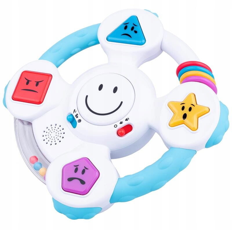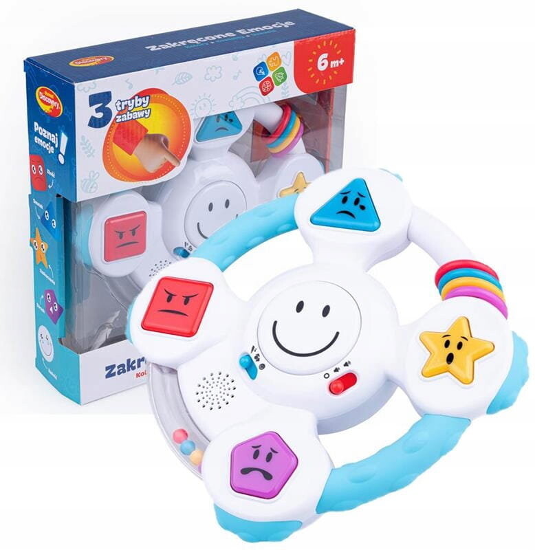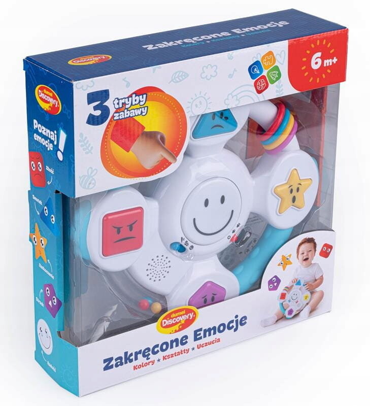 Dumel Discovery Crazy Emotions DD 62364 Вращайте колесо, изучая эмоции, формы и цвета! Эта инновационная игрушка в доступной форме учит детей распознавать эмоции, объясняя, как мы себя ведем, например: когда мы чувствуем радость, страх или удивление. Также рассказывается о формах и цветах, приводя самые молодые примеры их появления в окружающем нас мире. Все это дополняет веселая песенка, побуждающая детей к взаимодействию с игрушкой. Внизу руля имеется практичная присоска, благодаря которой игрушку можно прикрепить к гладкой поверхности, чтобы она не двигалась во время использования. Игрушка предназначена для детей от 6 месяцев.   Особенности игрушки: - игрушка говорит по-польски - 3 режима игры: цвета, формы, эмоции - регулировка громкости - разнообразные текстуры - подвижные элементы - вращающийся руль - присоска внизу используется для крепления руля - возраст: 6 м+ ДАЙТЕ СВОЕМУ РЕБЕНКУ САМОЕ САМОЕ ЛУЧШЕЕ ОТ DUMEL DISCOVERY! :) Руль доставит вашему ребенку удовольствие и обучение :) Руль будет стимулировать воображение маленького исследователя, а также он научится причинно-следственным связям.   САМЫЕ ГЛАВНЫЕ ПРЕИМУЩЕСТВА РУЛЯ: - тренирует память - говорит по-польски - тренирует концентрацию - помогает в логическом мышлении - стимулирует веселье Изготовлен из высококачественных материалов! Идеально подходит в качестве подарка! Подвижные элементы - перемещайте цветные кольца. Гремящие бусины - поверните руль, чтобы рассыпать бусины.