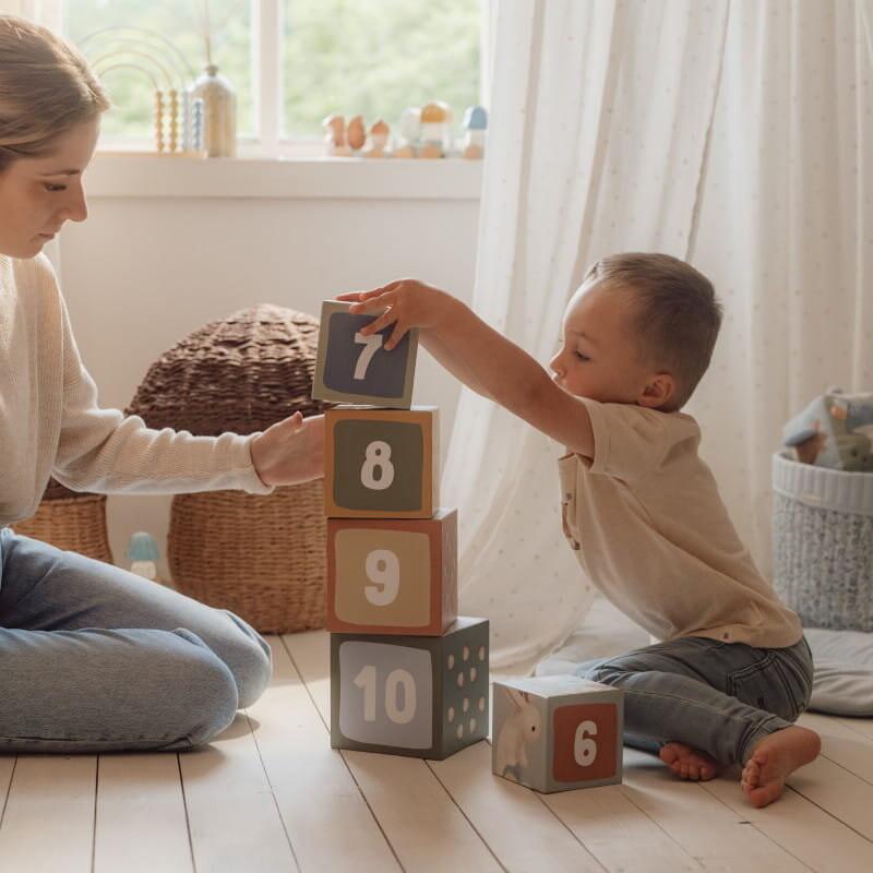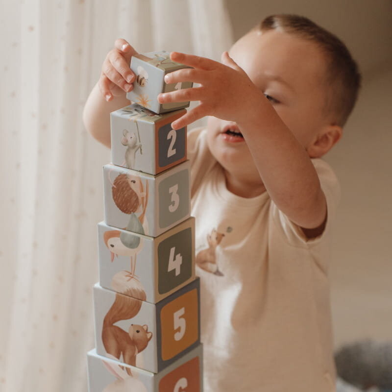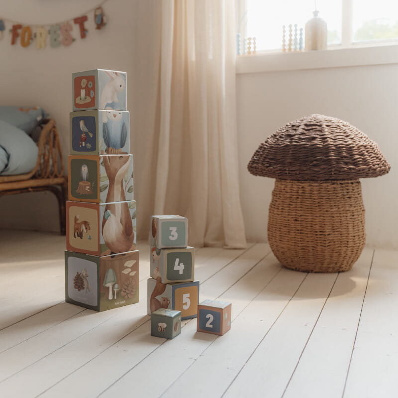 Познакомьтесь вместе с животными из волшебного леса – белками, лисичками, зайчиками, ёжиками, совами. Каждый блок содержит красивые иллюстрации из сборника «Лесные друзья» и дает множество идей для очаровательной игры. Ребенок может построить высокую башню, складывая кубики друг на друга или располагая их горизонтально на полу. Вы можете расположить лесных животных от самого большого до самого маленького и в игровой форме выучить цифры и счет. Он также идеально подходит в качестве контейнера для детских сокровищ.