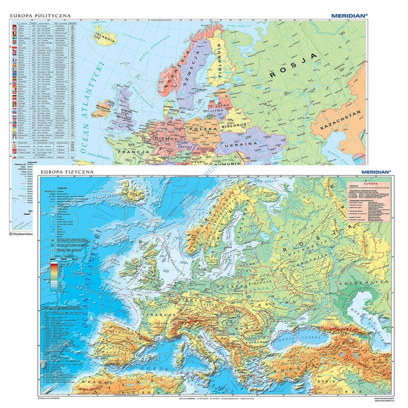 ДУО Физическая Европа с экологическими элементами/Политическая Европа (2017) - двухсторонняя настенная карта