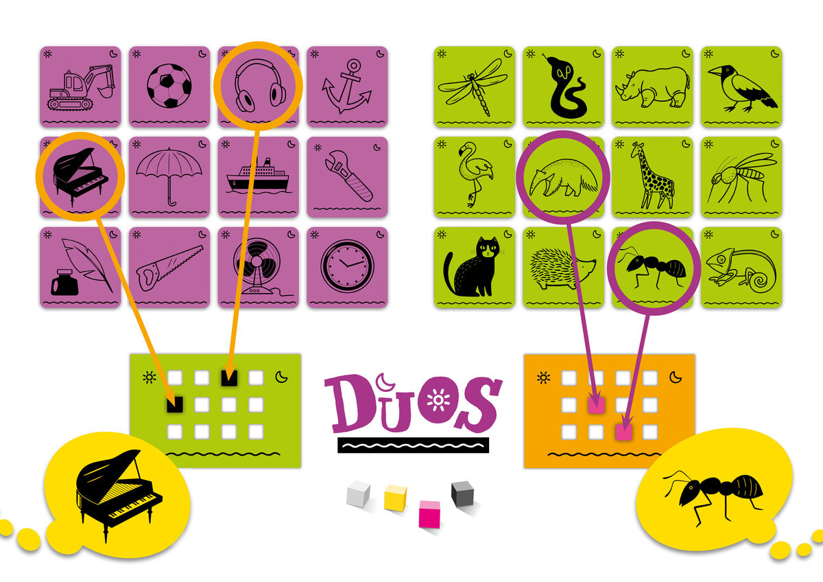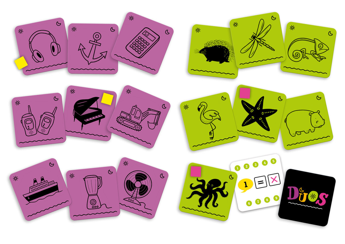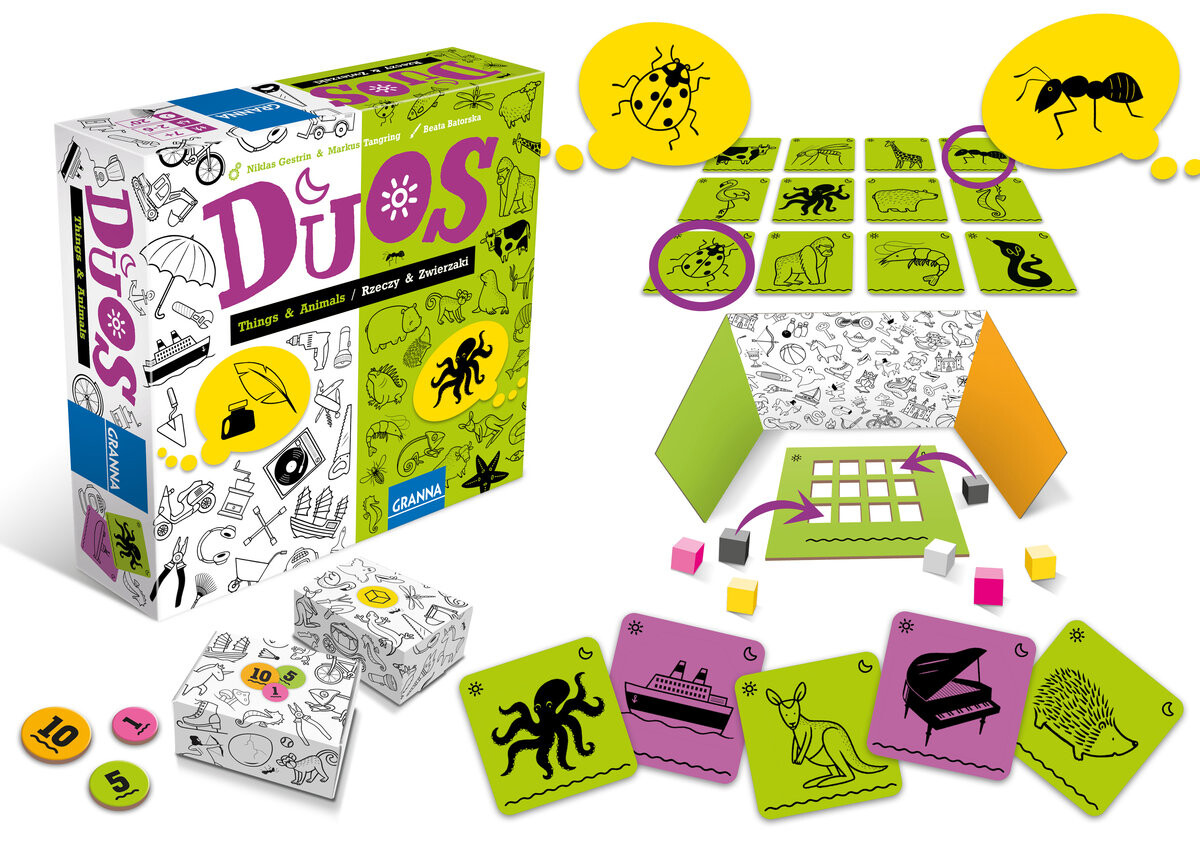 Что важно в Duos, так это креативность и способность предугадывать ассоциации других игроков. Быстрые раунды и множество интересных разговоров за столом — это Duos, социальная игра, которая подойдет как для семьи, так и для друзей. В игре присутствуют 2 тематические категории «предметы» и «животные» и все необходимое для игры. Он совместим с моделями Duos SPORT & FAIR. Содержание обеих игр можно комбинировать.