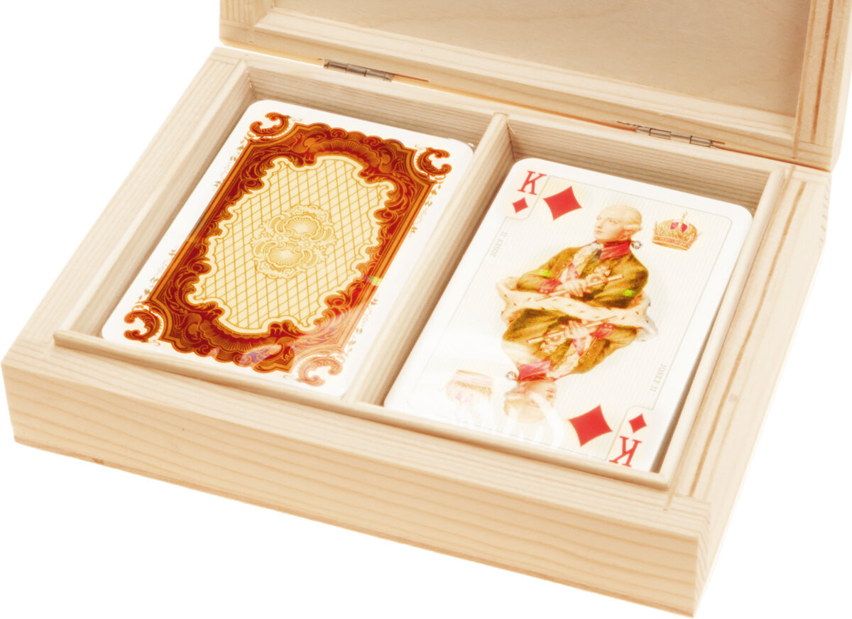 Двухколодный набор производства фабрики в Вене специально для о польских поклонниках этой довоенной модели, ранее доступной только в однодековых вариантах. Это одни из самых узнаваемых карт Пятника, которые уже понравились Пилсудскому. Сегодня они известны как «Pewexy» — по названию магазинов, в которых игроки могли приобрести этот товар, который был дефицитом во времена Польской Народной Республики. Красивые фигурки на аверсе, характерные дубовые листья на реверсе и упаковке. Колоды состоят из 55 пластиковых карт размером 58 х 89 мм и весом 310. Идеально подходят для бриджа, покера, рамми и других игр.