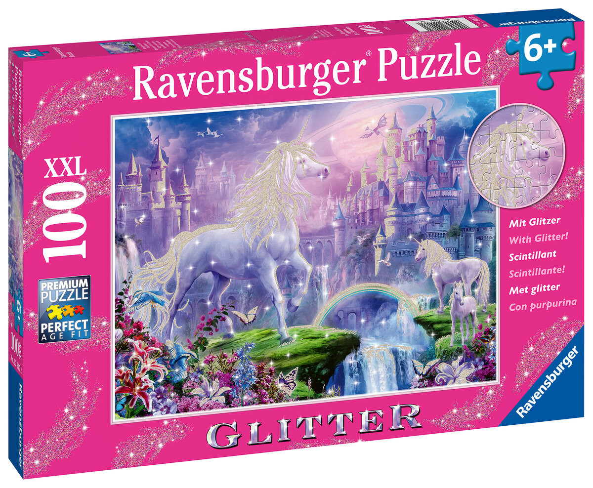 Содержимое коробки:пазл из 100 деталей (размер головоломки зависит от возраста ребенка) на тему «Королевство единорогов».