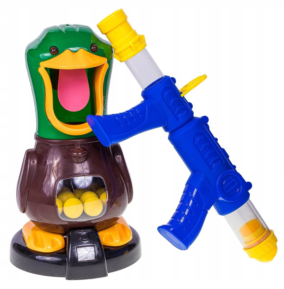 Стрельба по мишени требует от ребенка концентрации, благодаря чему он приобретает навыки зрительно-моторной координации. Просто ударьте пенопластовым шариком по языку утки, и шарик упадет в брюшко утки. и к счетчику будет добавлено очко.Характеристика