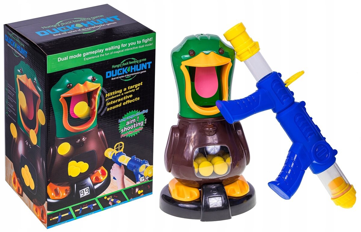 Пистолет для стрельбы по мишеням Hungry DUCK + шарики — отличная идея для отличного развлечения вашего ребенка. Этот фантастический набор — идеальное решение для всех любителей стрельбы и соревнований.