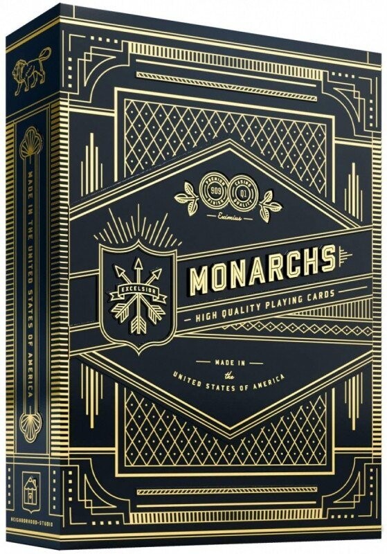 Колода карт Monarchs была разработана группой Theory11 в соответствии с высочайшими стандартами United States Playing Cards Co. Для их производства использовались материалы высочайшего качества Q1 с маркировкой Premium 909 Finish.