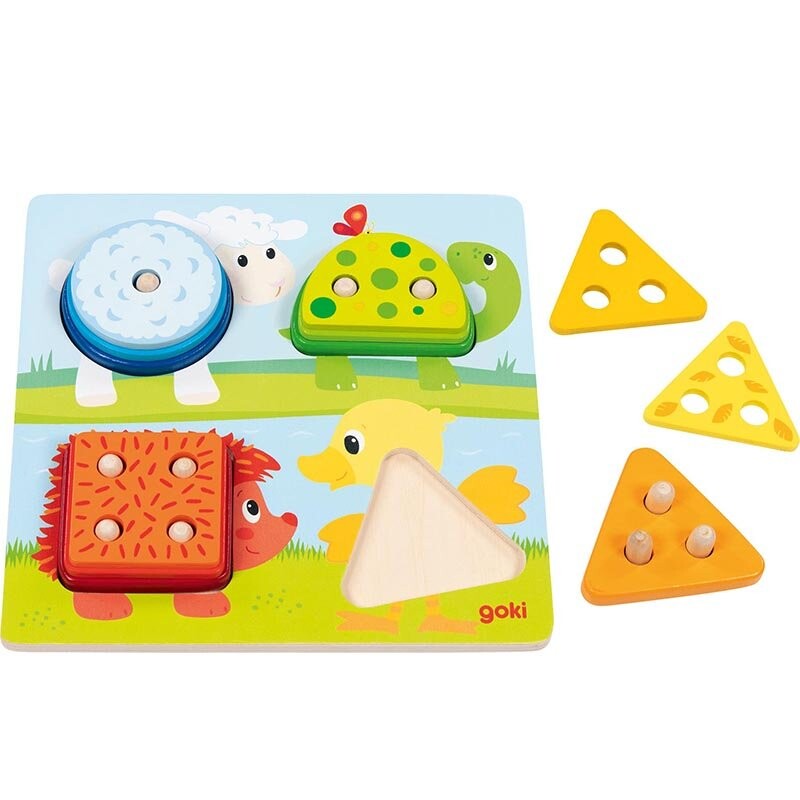 У кого есть шипы, а кто носит перья? Цвета, формы, размеры и животные — с этой классической деревянной игрушкой можно многому научиться. Деревянный сортер – это вид игрушки, оказывающий существенное влияние на развитие детей на ранних этапах жизни. В ходе увлекательной игры ребенок учится правильно сочетать цвета и формы. Симпатичные животные и приятные контрастные цвета сразу заинтересуют вашего ребенка этой деревянной игрушкой.