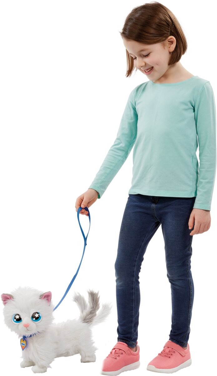 Мими — интерактивный котенок, который пойдет куда угодно! У него новый синий ошейник и поводок. Мими ходит, виляет хвостом и мяукает! Вы можете взять его на прогулку. У него нежная и приятная на ощупь шерстка и милые глазки. Погладьте его по спине, и он последует за вами!Потрогайте нежный и приятный мех. Одна из самых восхитительных особенностей Мими — ее приятный на ощупь мех. Он изготовлен из материалов высочайшего качества, благодаря которым поглаживание Мими доставляет настоящее удовольствие. Почувствуйте, какая у нее мягкая шерсть и как приятно проводить время с этим очаровательным котенком. Поразитесь очарованию милых глаз! Взгляд Мими невозможно игнорировать. Ее очаровательные глаза делают ее похожей на настоящего котенка, который хочет вашего внимания и любви. Когда ты посмотришь ей в глаза, ты почувствуешь это. что Мими станет частью вашей семьи, готовой к совместным приключениям. Погладьте ее по спине, и она последует за вамиОдин из удивительных аспектов интерактивности Мими — ее реакция на прикосновения. Когда вы погладите ее по спине, Мими последует за вами. Эта игрушка позволит вам почувствовать себя настоящим кошачьим хранителем, когда Мими следует за вами, готовая к любой вашей инициативе. Для полноценной игры необходимы батареиЧтобы в полной мере воспользоваться интерактивными функциями Mimi, важно помнить о батареях. Игрушка оснащена демонстрационными батарейками, которые рекомендуется заменить перед игрой. Стоит купить 4 батарейки АА, чтобы Мими могла доставить вам много радости. Помните, что продукт предназначен для детей от 3 лет.