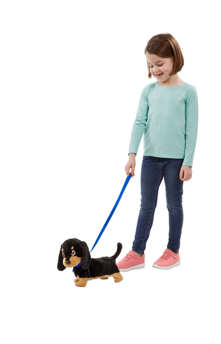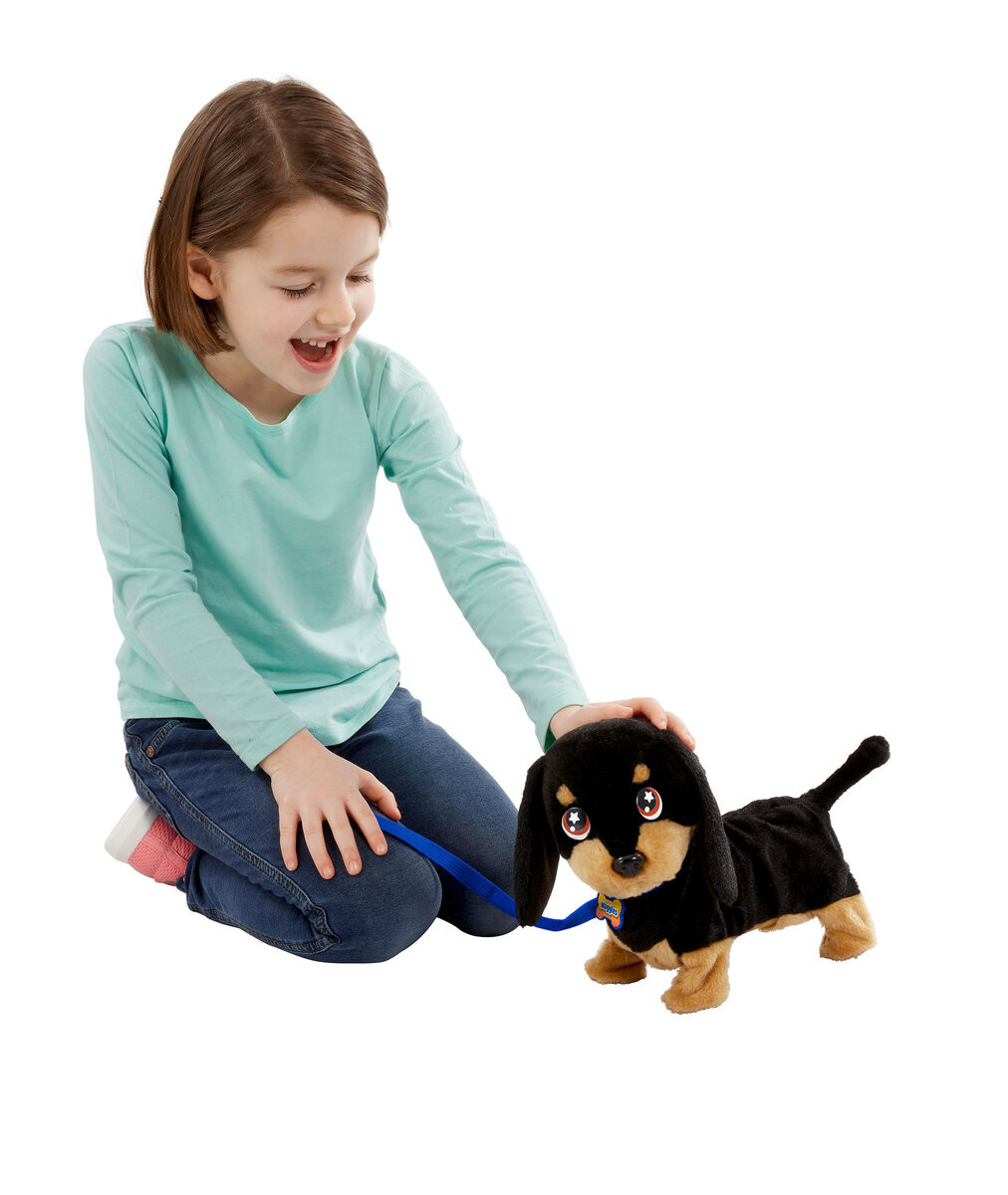 Waggles — это интерактивная собака, которая пойдет куда угодно! Собака гуляет, виляет хвостом и лает. Погладьте его по голове, и он пойдет с вами гулять! У собаки нежная и приятная на ощупь шерсть и милые глаза. Также у него есть поводок, на котором его легко можно вывести на прогулку, и идентификационная бирка с именем на ошейнике.Нежный мех и очаровательные глазкиУ Вагглса красивый, нежный мех, приятный на ощупь. Гладить и обнимать его доставляет огромное удовольствие, а мягкость его шерсти дарит настоящие впечатления. Его милые глаза добавляют еще больше очарования и делают его похожим на настоящую собаку, готовую принести радость и любовь. Подготовлен к прогулке с идентификационной биркой и поводкомВагглс готов к прогулке благодаря поводку и идентификационной бирке на ошейнике. Это добавляет аутентичности и делает что собака выглядит полноправным членом семьи. Благодаря поводку вы легко сможете выводить вагглов на прогулку, наслаждаясь временем, проведенным вместе на свежем воздухе.