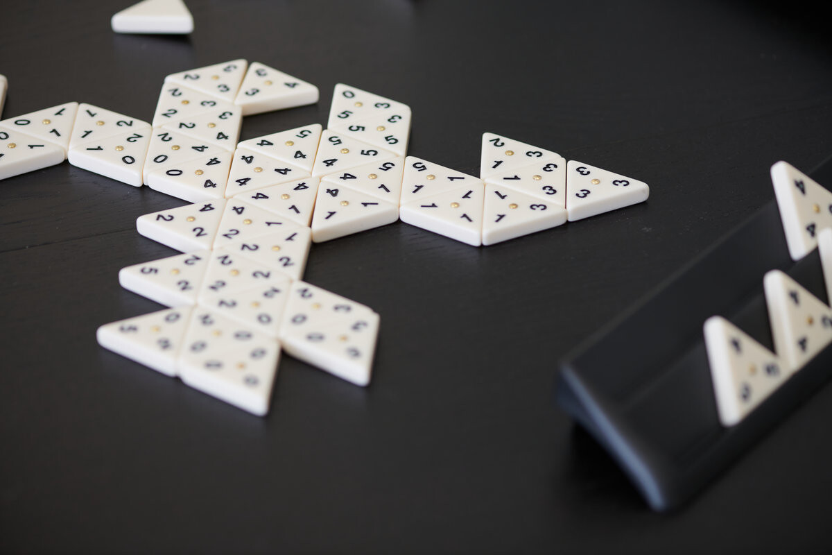 Треугольные фигуры и угловые числаФишки, которые нужно разместить в Триомино, имеют необычную форму равносторонних треугольников, что придает игре уникальный вид. В каждом углу треугольника находится число, которое играет ключевую роль во время игры. Добавляя еще одну плитку в уже устроенную систему, мы должны следить за тем, чтобы числа в соседних углах были одинаковыми.