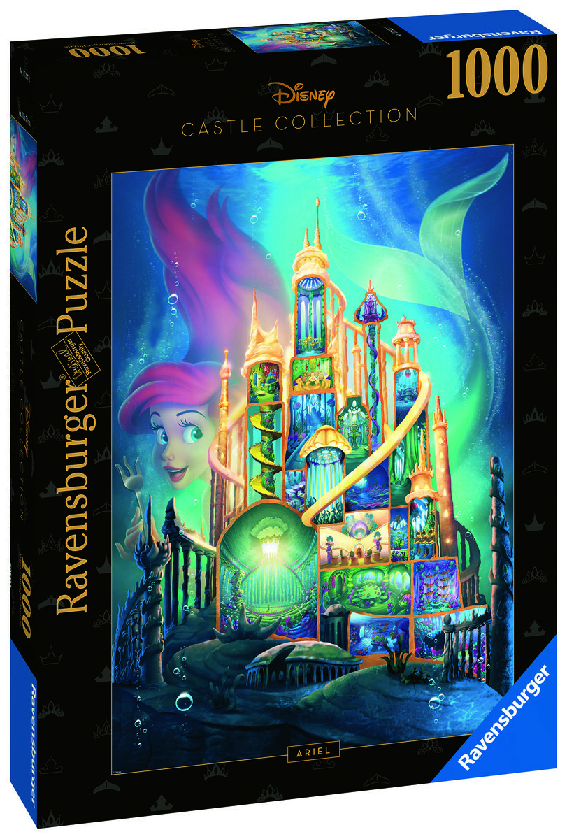 Пазлы могут представлять различные темы, например, пейзажи, животные, архитектурные объекты или известные произведения искусства. Также есть головоломки разной сложности. от простого для детей до более сложного для людей, которые любят сложные задачи. Пазл – уникальная и интересная игра. Это также способ расслабиться и провести время с пользой. Пазл Ravensburger из 1000 деталей на тему: коллекция Disney Ariel. В собранном виде пазл имеет размеры 50 х 70 см. Ravensburger — крупнейший производитель пазлов в мире, который производит уже более 130 лет. Пазлы Ravensburger имеют антибликовое покрытие – они изготовлены из запатентованного, плотного картона с мягкой подкладкой (картинка напечатана на бумаге со структурой льняного волокна, что снижает светоотражение, облегчает сборку, а саму картинку , независимо от размера головоломки более понятно). Более того, благодаря запатентованной технологии SoftClick каждый отдельный кусочек пазла Ravensburger имеет уникальную форму и помещается только в одном месте. Формы пазлов разнообразны благодаря кубику ручной работы. Пазлы Ravensburger устойчивы к изгибу.